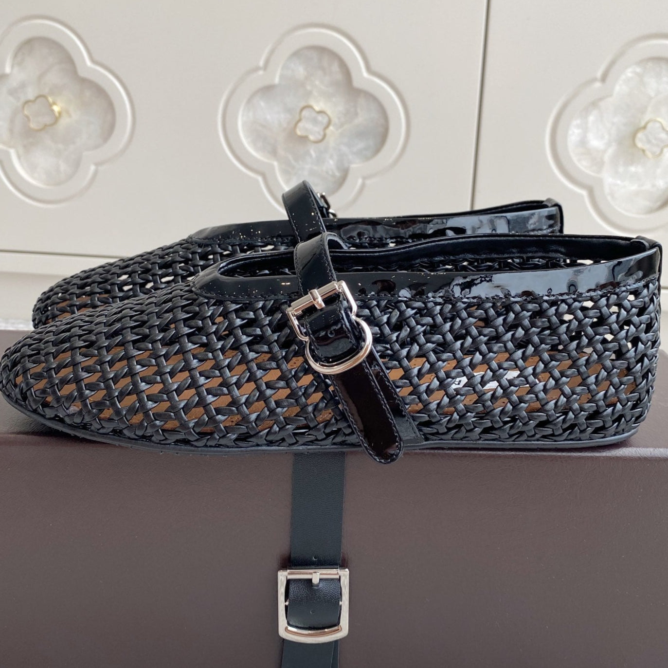 ALAIA MARY JANE FLATS black woven calfskin pattent