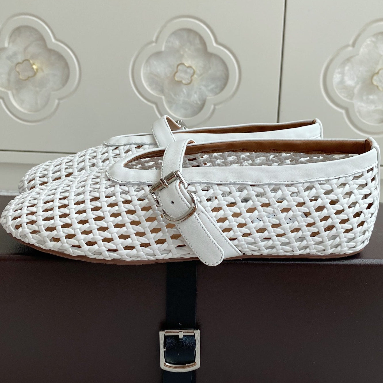 ALAIA MARY JANE FLATS white mix beige woven calfskin pattent