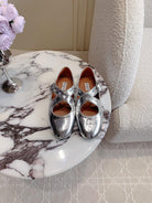 ALAIA CRISS CROSS BALLET FLAT IN SILVER LAMBSKIN