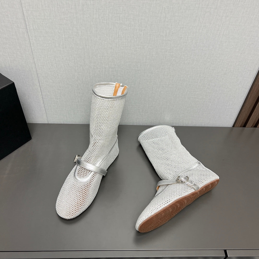 ALAIA SHORT BOOTS IN BEIGE MESH FISHNET