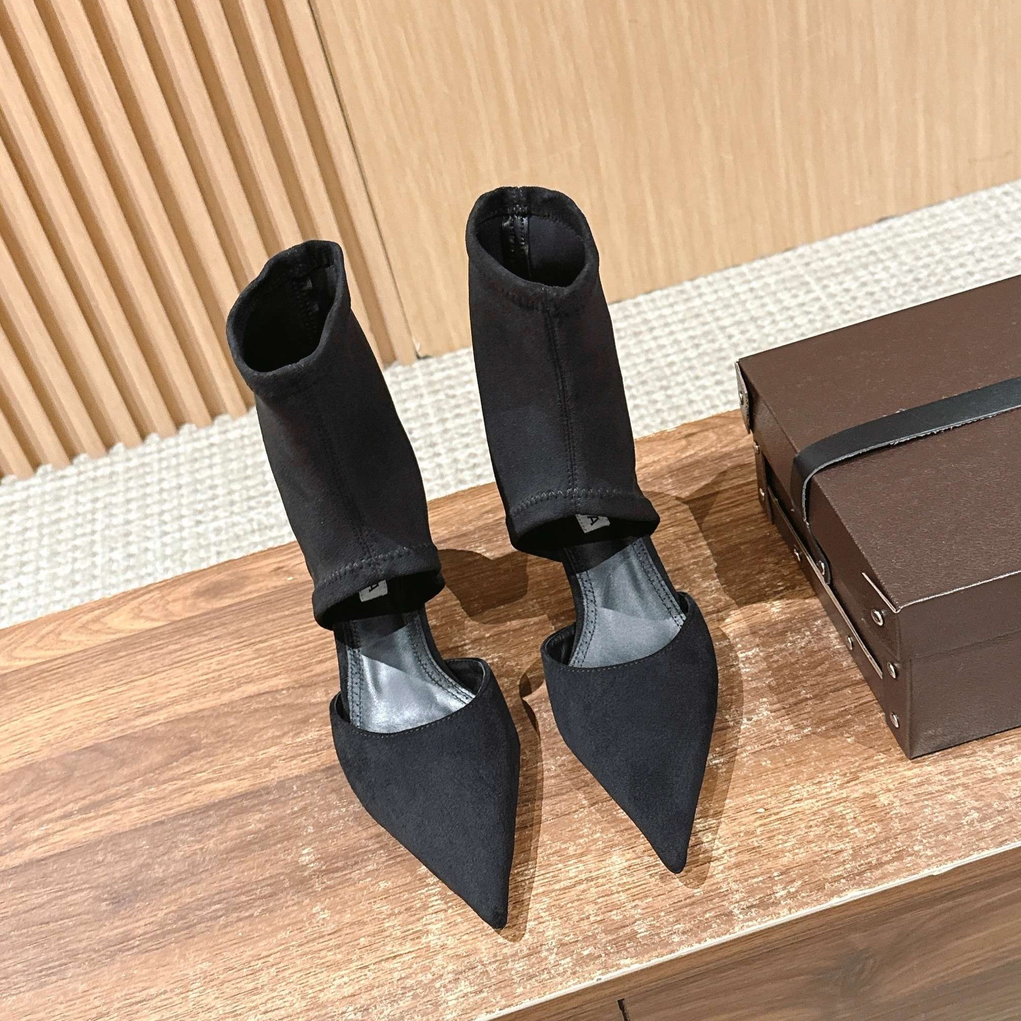 ALAIA high-heeled short boots black velvet 386015