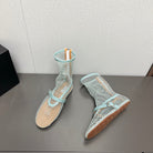 ALAIA SHORT BOOTS IN LIGHT BLUE MESH FISHNET