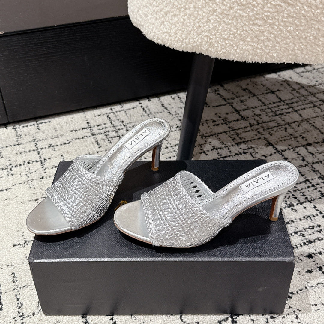 Alaia Heart 50mm Heels Slingbacks Black Sheepskin 810209