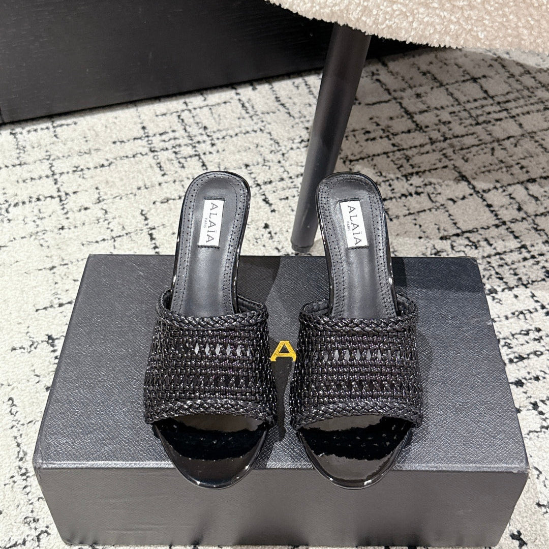 Alaia 25WF slippers belt buckle black suede wool 472226