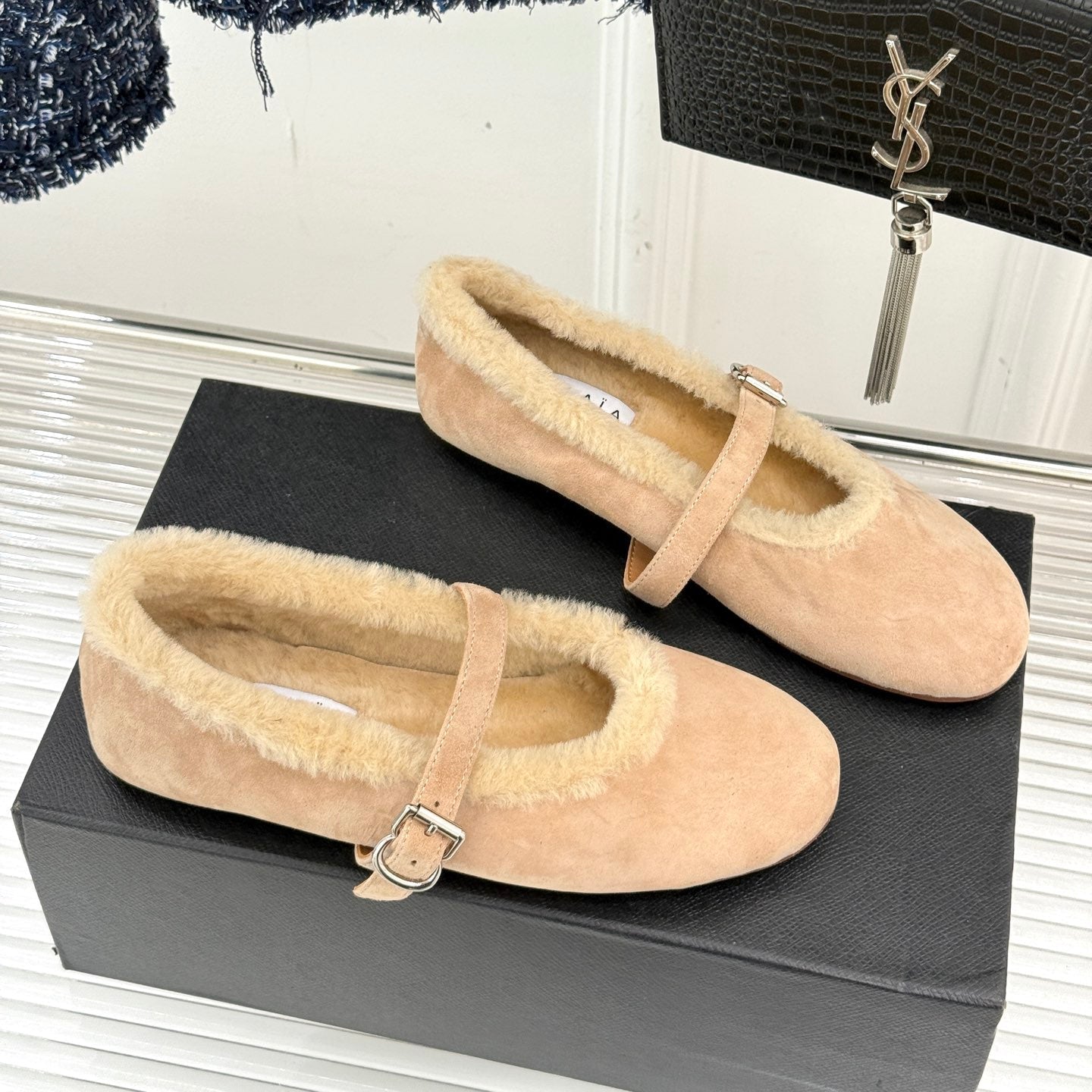 Alaia 25 Marry Janes Ballet Flats Black Wool Sheepskin 300453