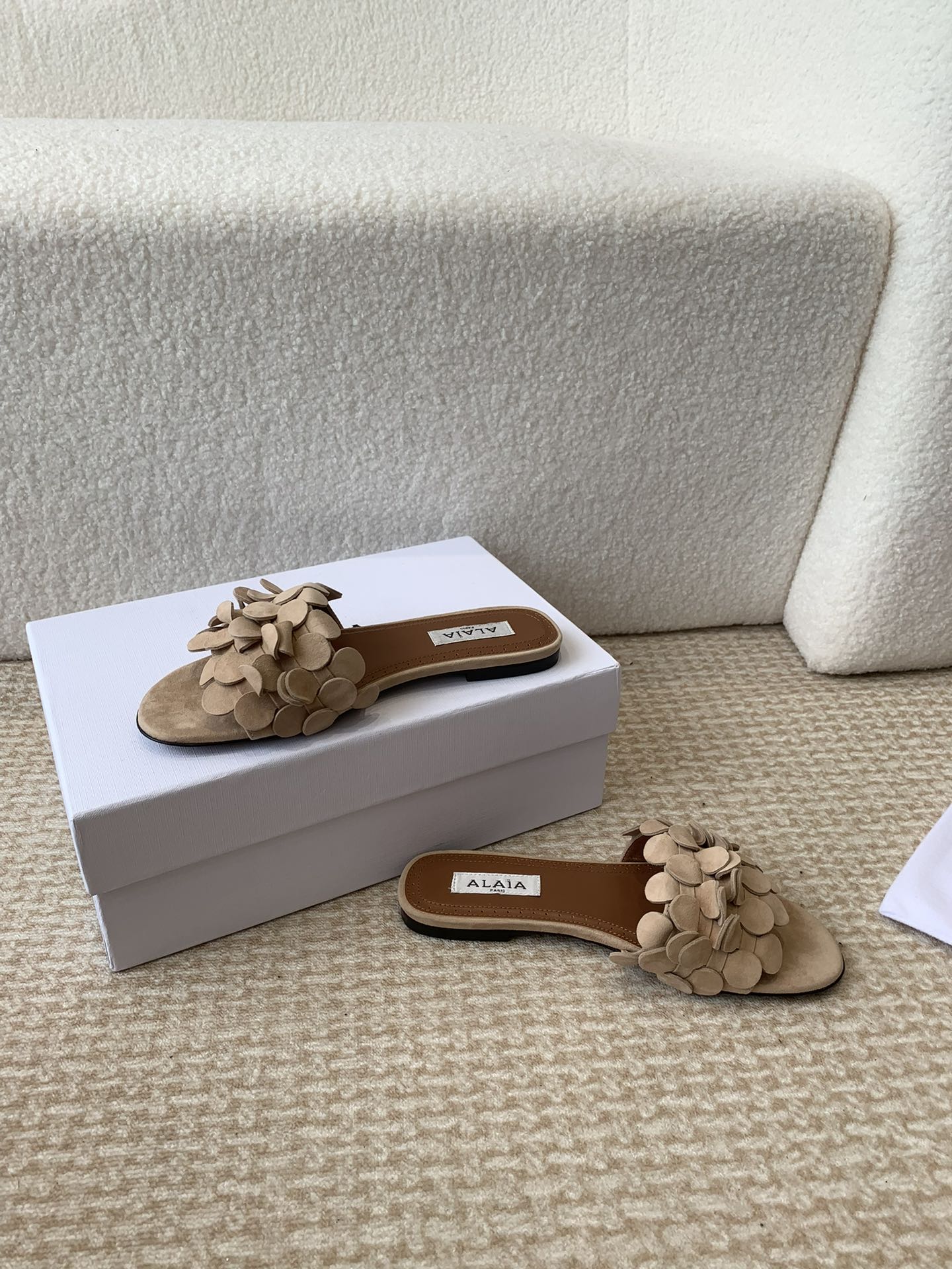 ALAIA FLAT MULE IN BEIGE CREAM SUEDE