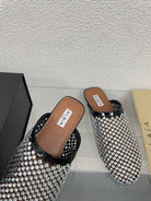 ALAIA FLAT MULES IN STRASS BLACK LAMBSKIN WITH RHINSTONES