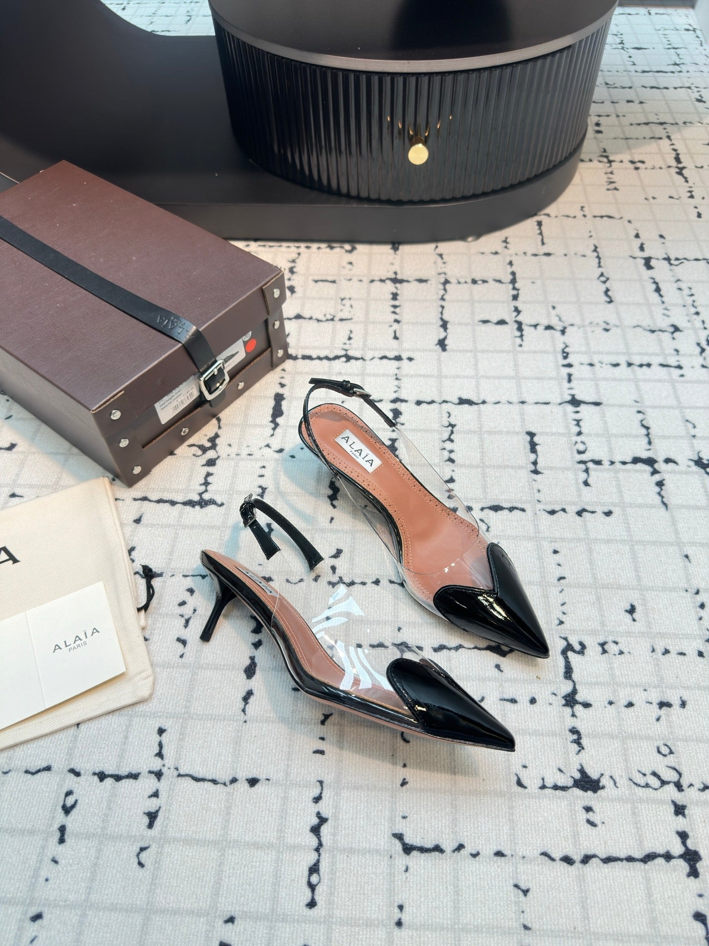Alaia Heart 50mm Heels Slingbacks Black Sheepskin 810209