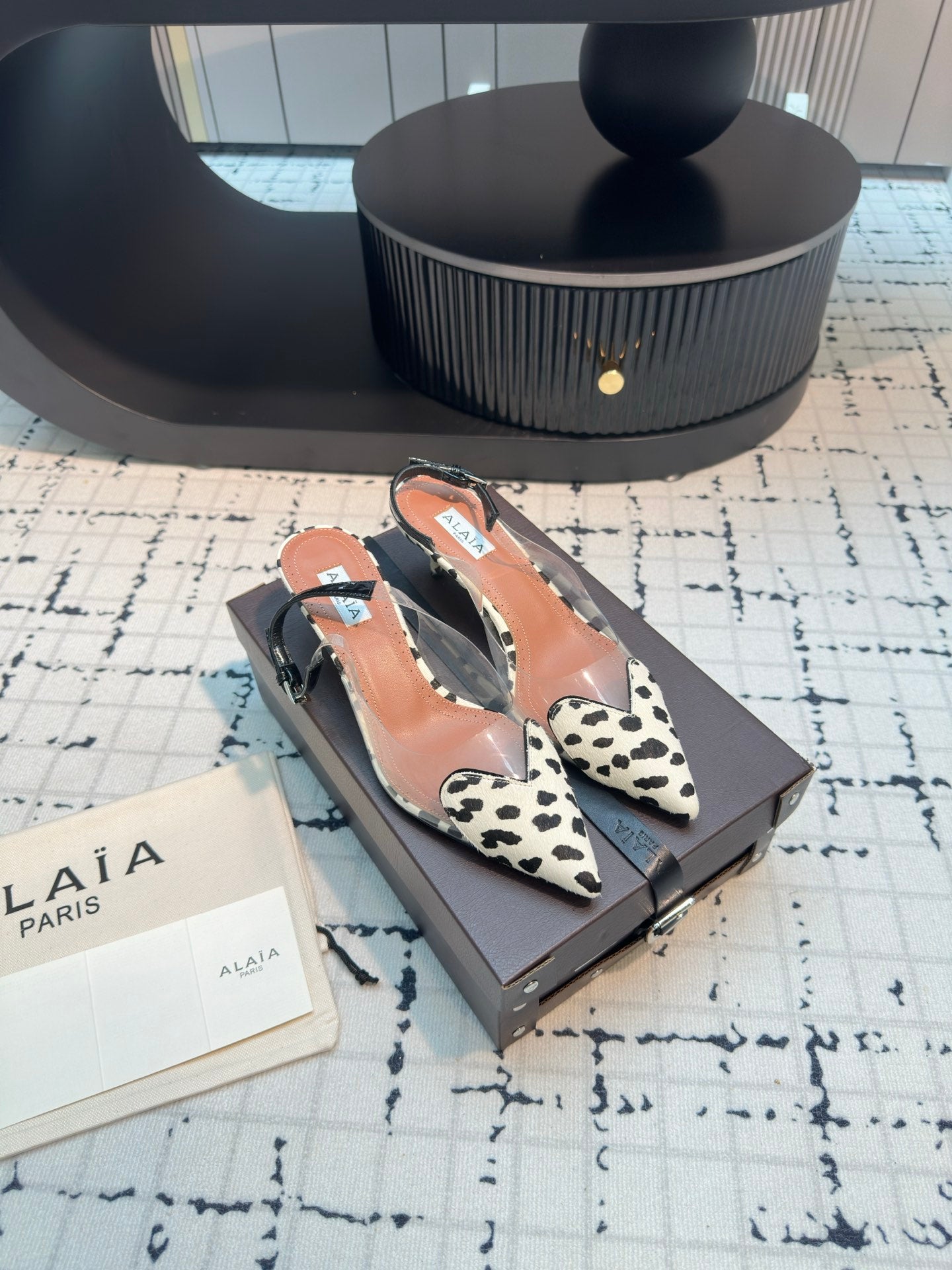 Alaia Heart 50mm Heels Slingbacks Dalmatian Sheepskin 810207