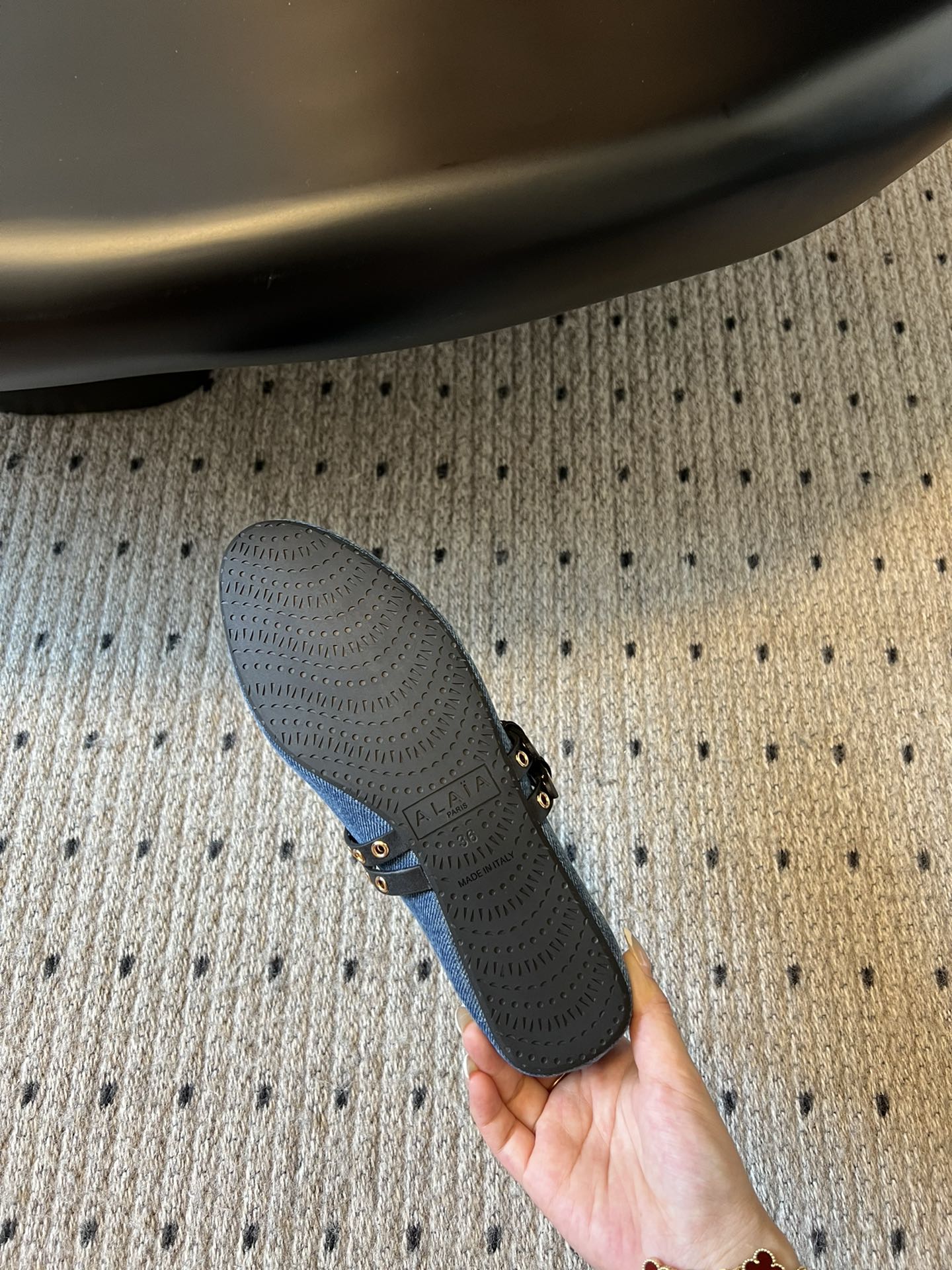 ALAIA MARY JANE SHOES IN CERULEAN BLUE ZP CUSTOM STRAW AND DENIM