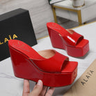 ALAIA PLATFORM WEDGE IN CHERRY RED LAMBSKIN WITH HEART EMBROIDERED