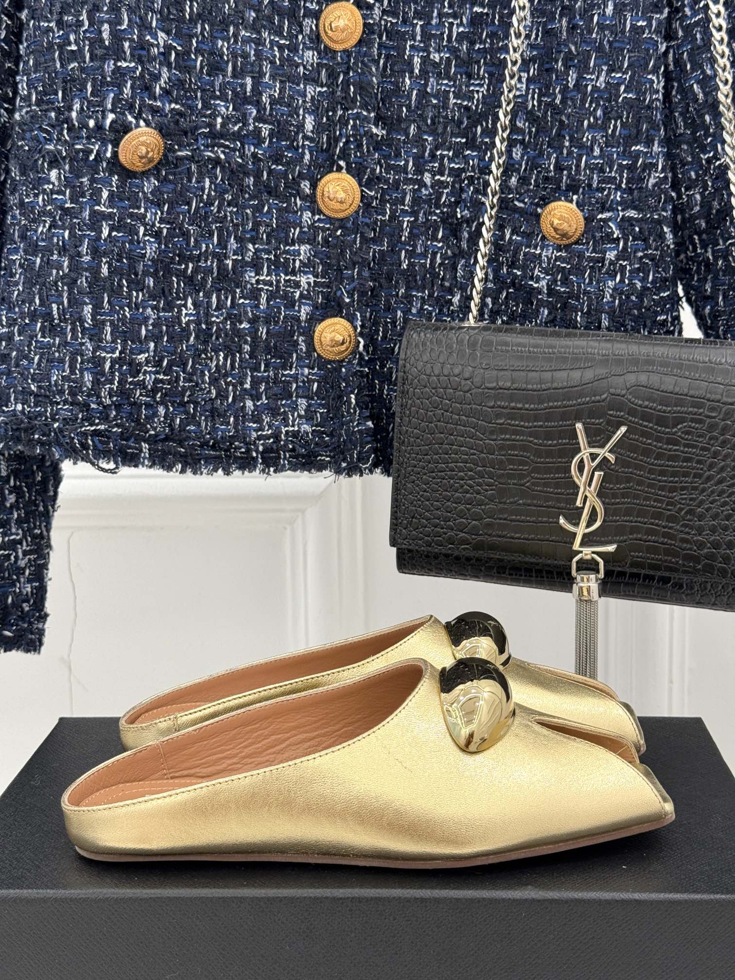 Alaia Slipper With Gold Hardware Gold Calfskin 293203