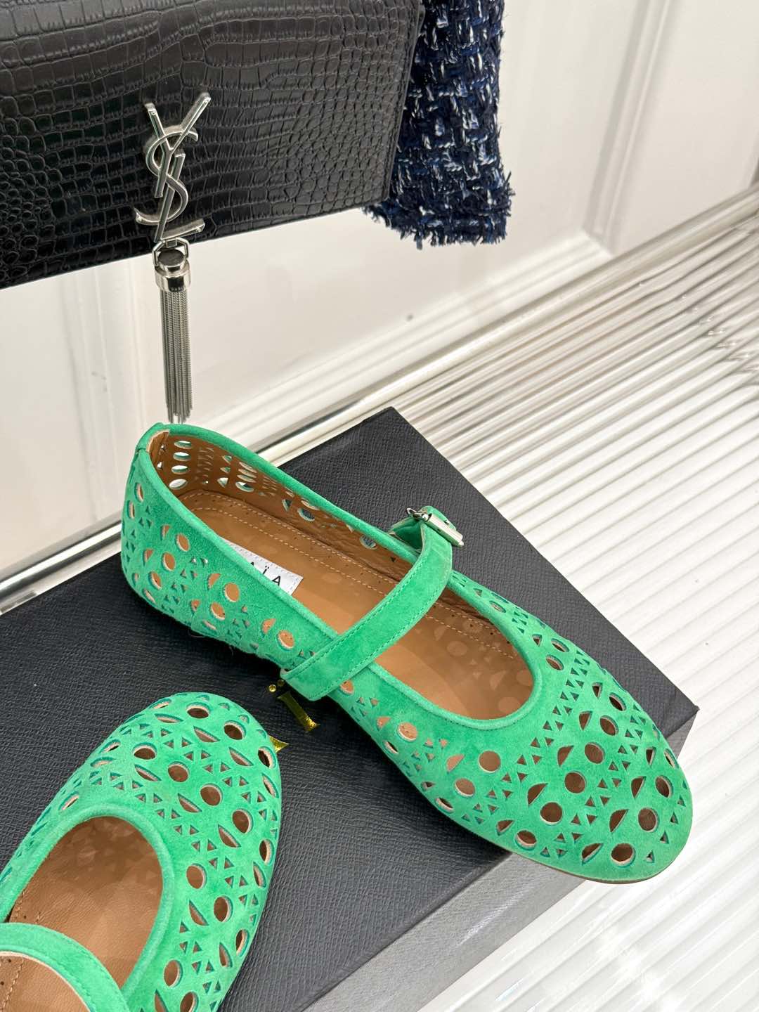 Alaia Women's Ballet Flat Shamrock Green Suede 293221