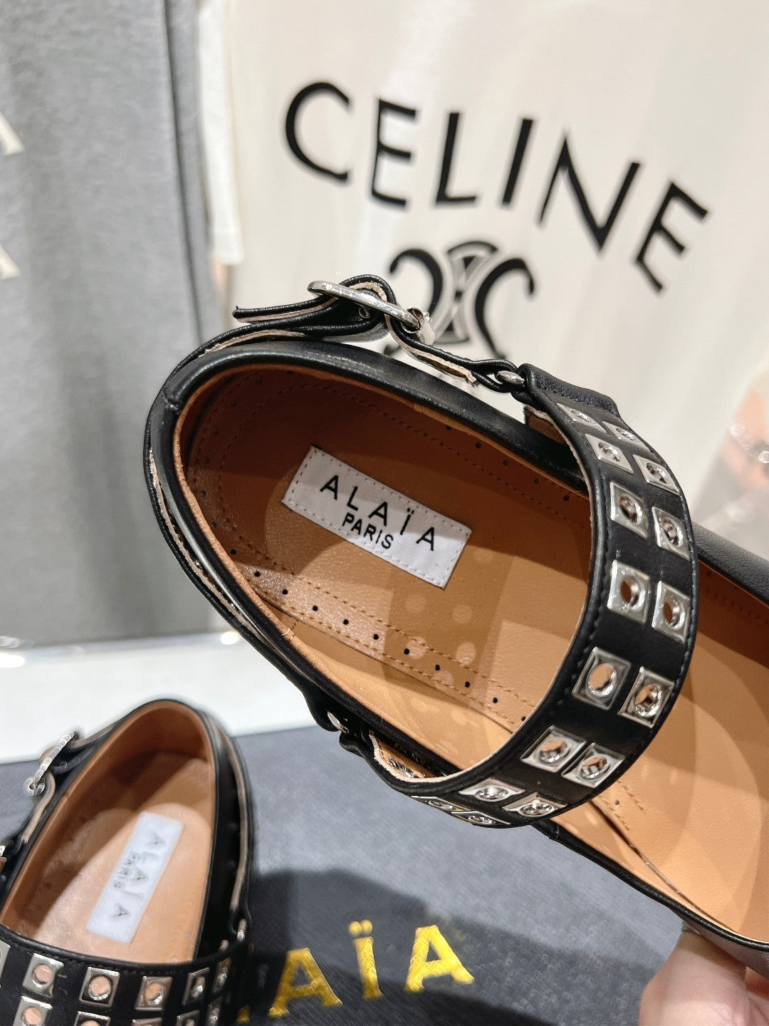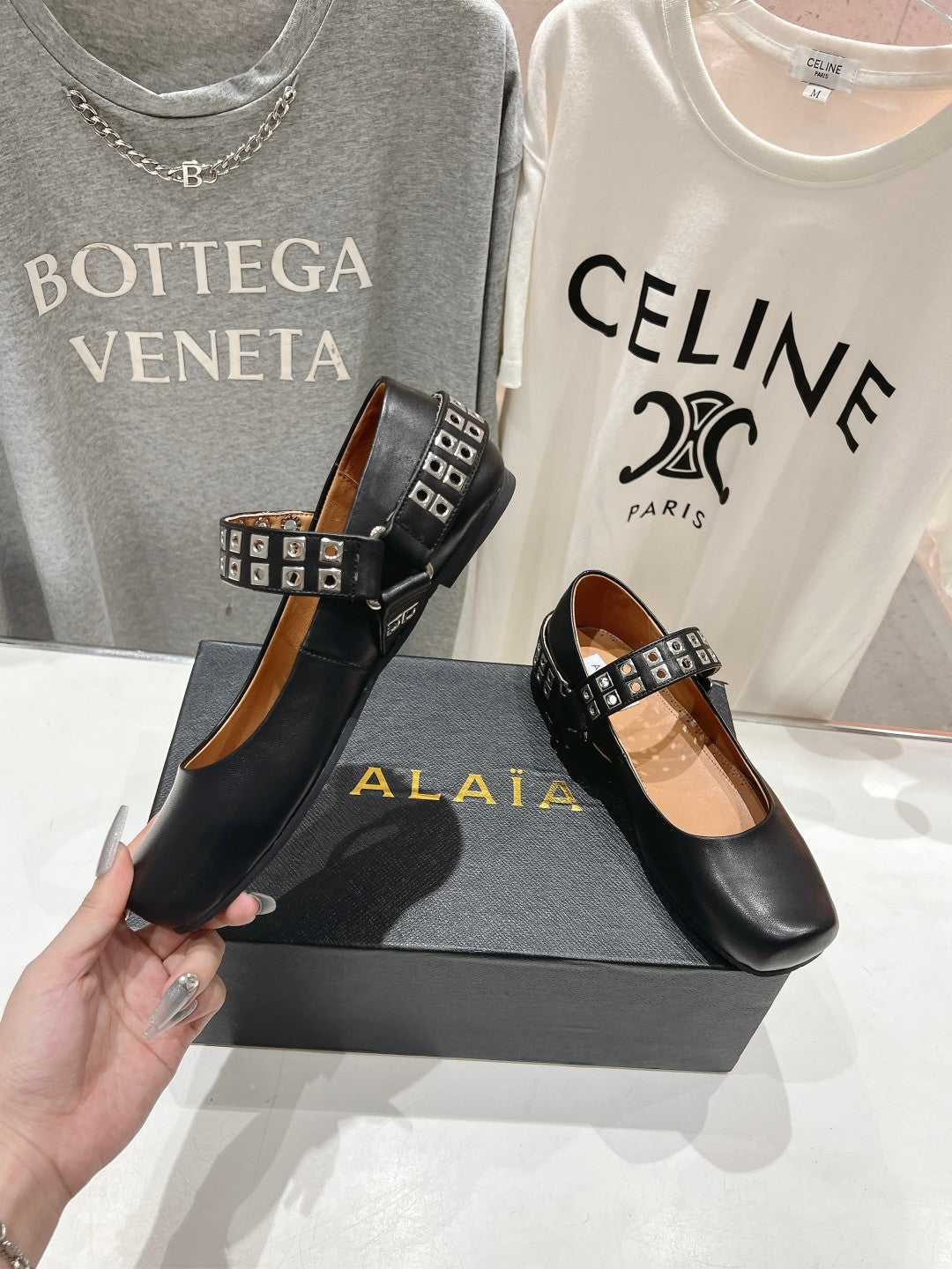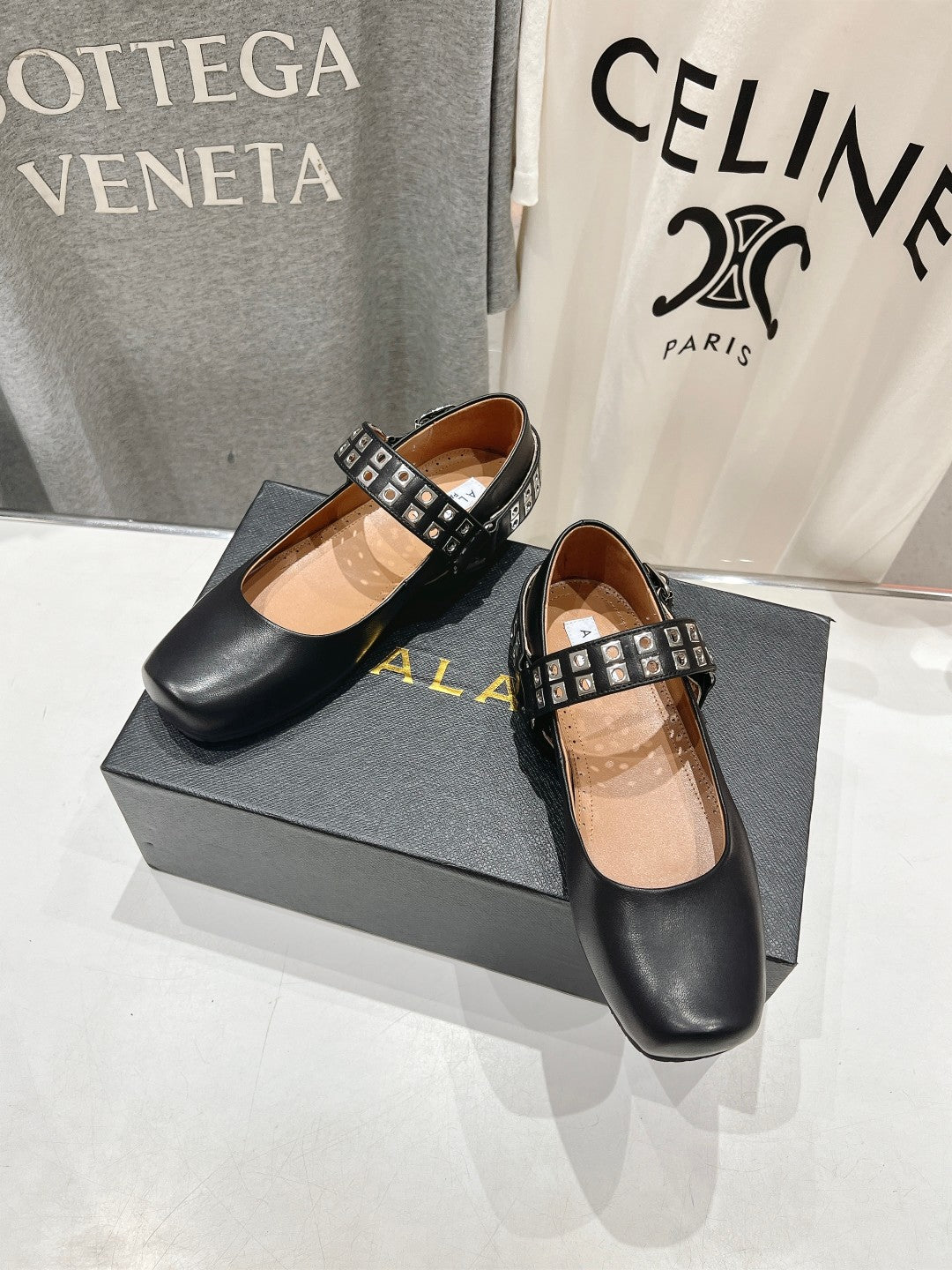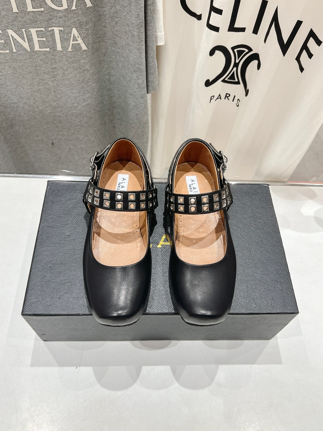 Alaila Biker Ballet Flats In Black Cowhide 911434
