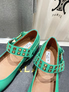 Alaila Biker Ballet Flats In Seafoam Green Cowhide 911446