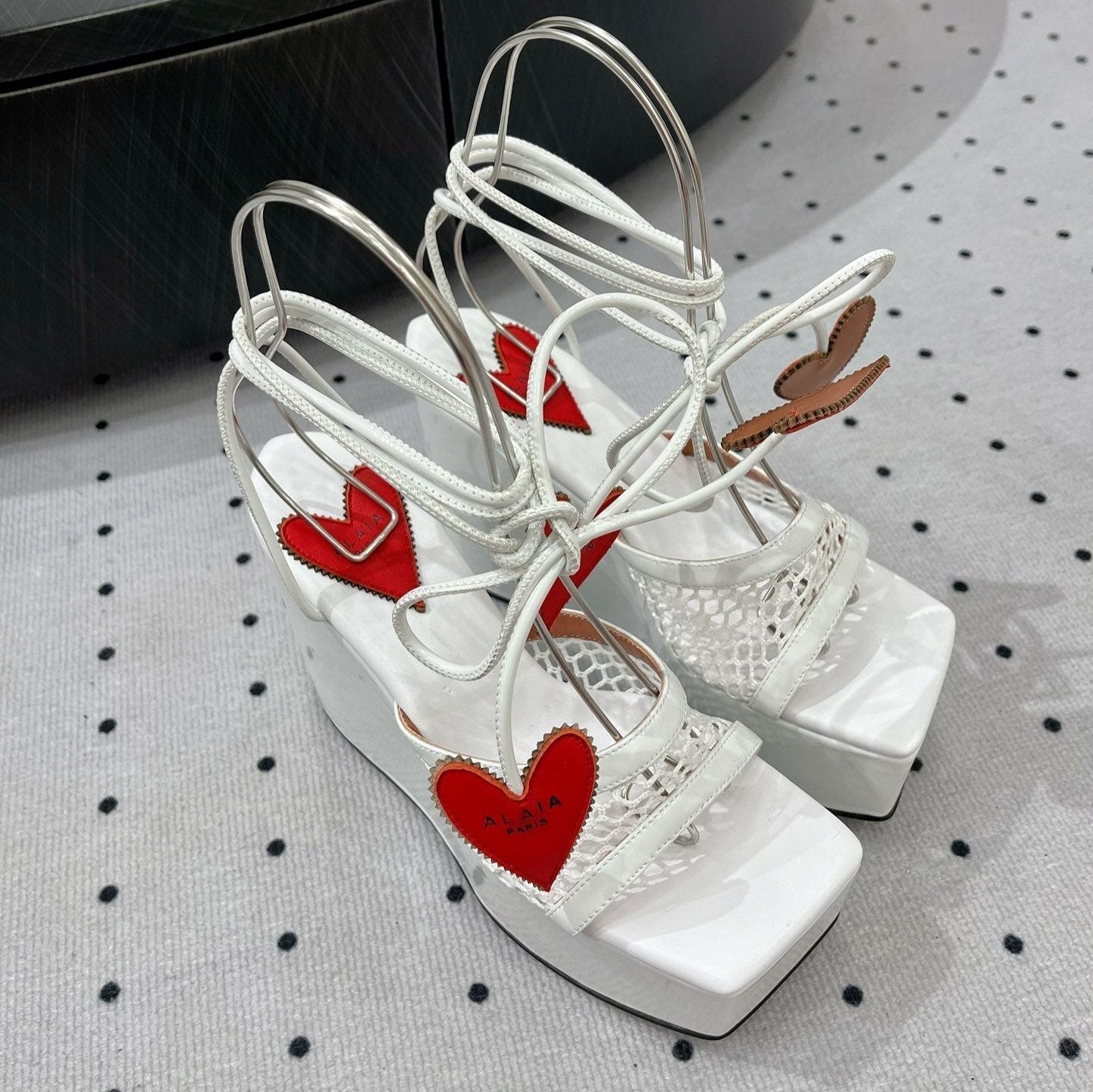 Alaila High Sandal 115mm In White Mesh Fabric 954862