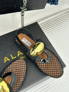 ballet flat jewel fishnet black lambskin
