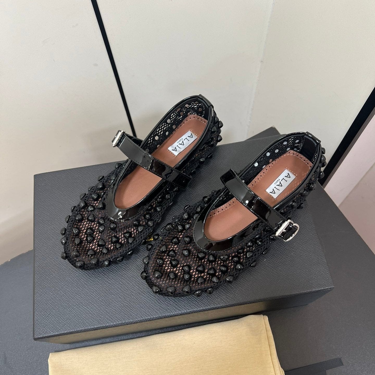 Alaila Ballet Flats With Studs On Fishnet In Black 975753