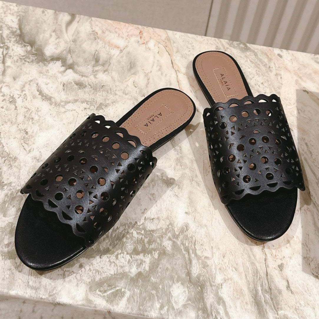 Alaia 2025 Hollow Slippers Black Leather 293653
