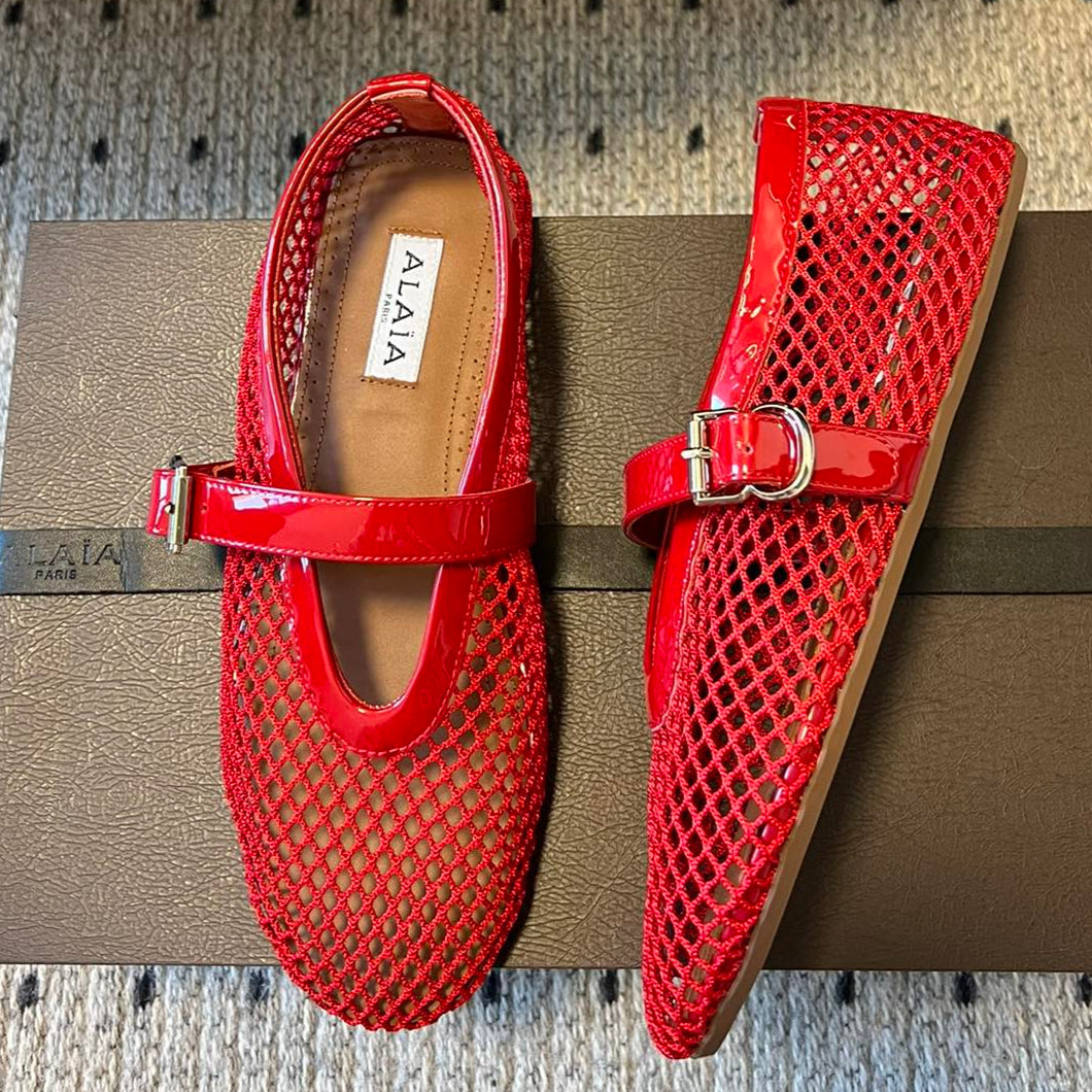 Alaia 25 Laminated Fishnet Ballet Flats Red Lambskin 576443