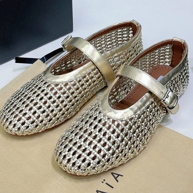 Alaia 25 Woven Ballet Flats Gold Metallic Leather 303675