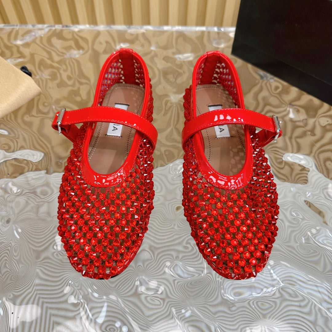 ALAIA BALLET FLATS IN CHERRY RED VELVET