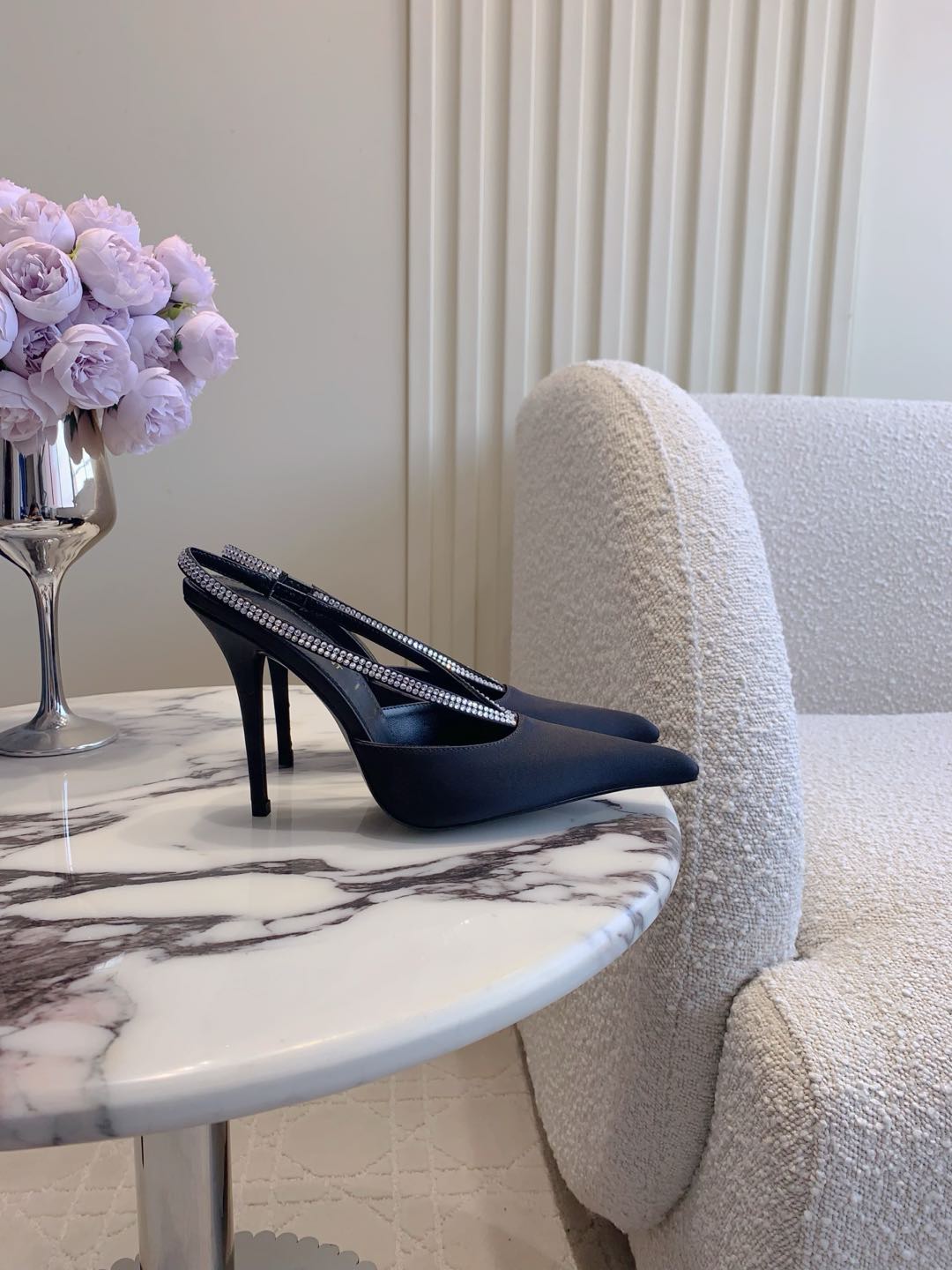 AMANDA SLINGBACK PUMPS IN BLACK SILK WITH RHINESTONES