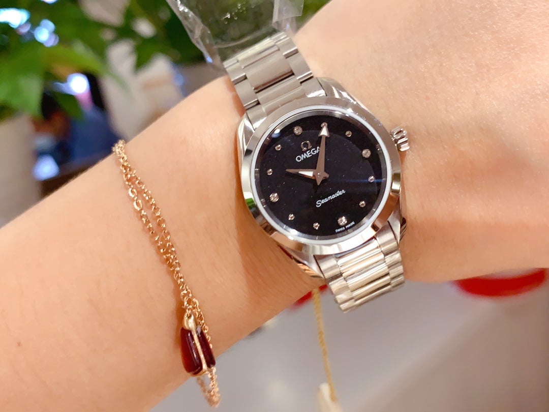 AQUA TERRA 28MM QUARTZ STEEL BLACK DIAL