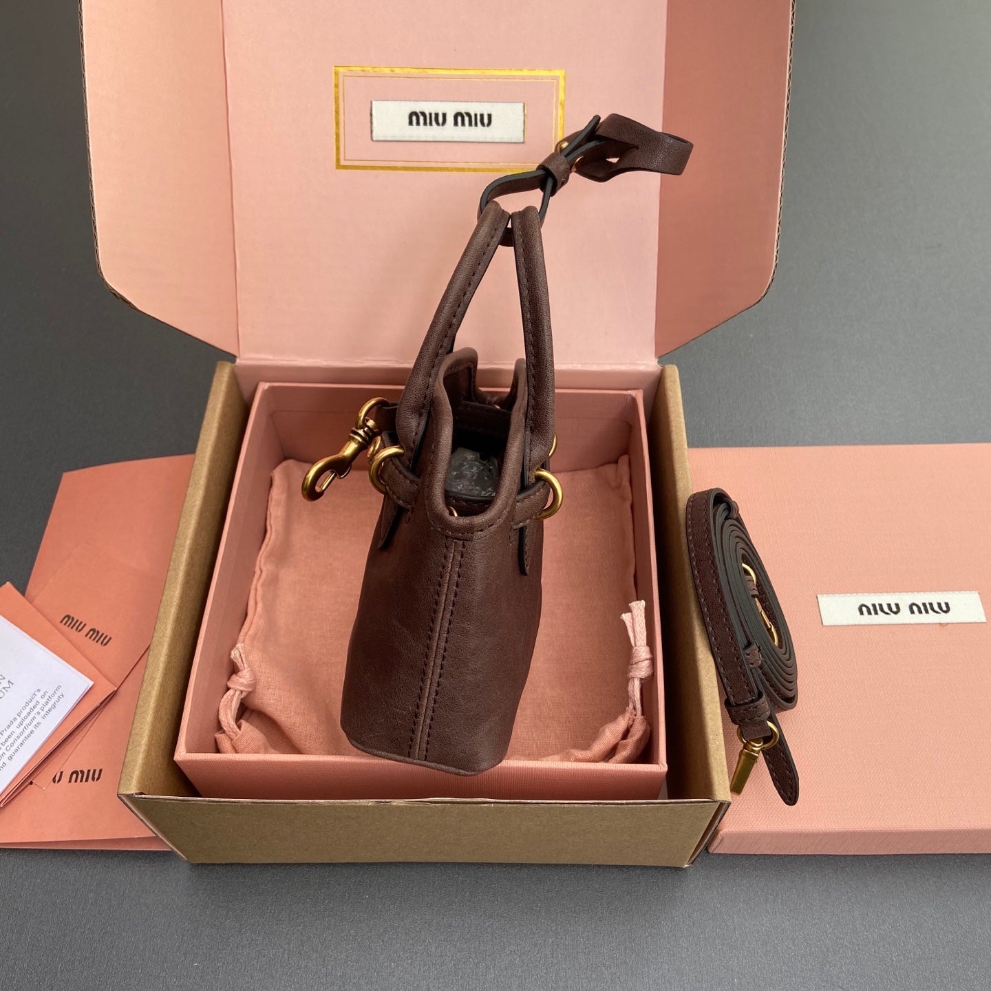 AVENTURE BAG 13 IN CRATER BROWN SHINY CALFSKIN