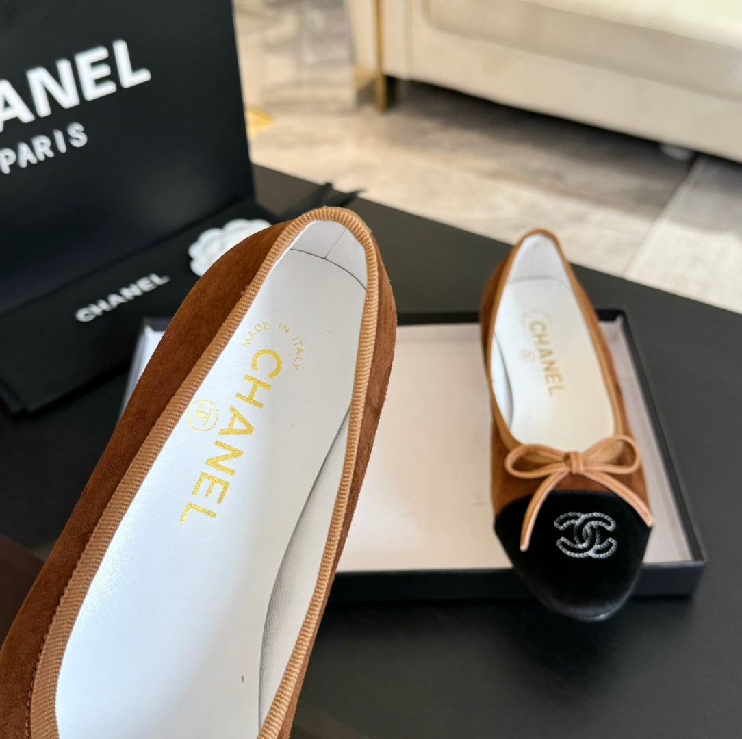 ballet flat dark brown suede black canvas