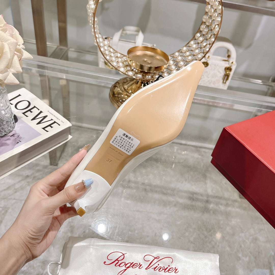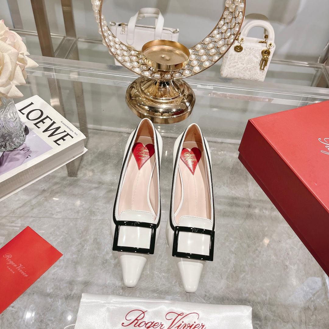Belle Viv Metal Buckle Pumps 65 White Black Patent Leather