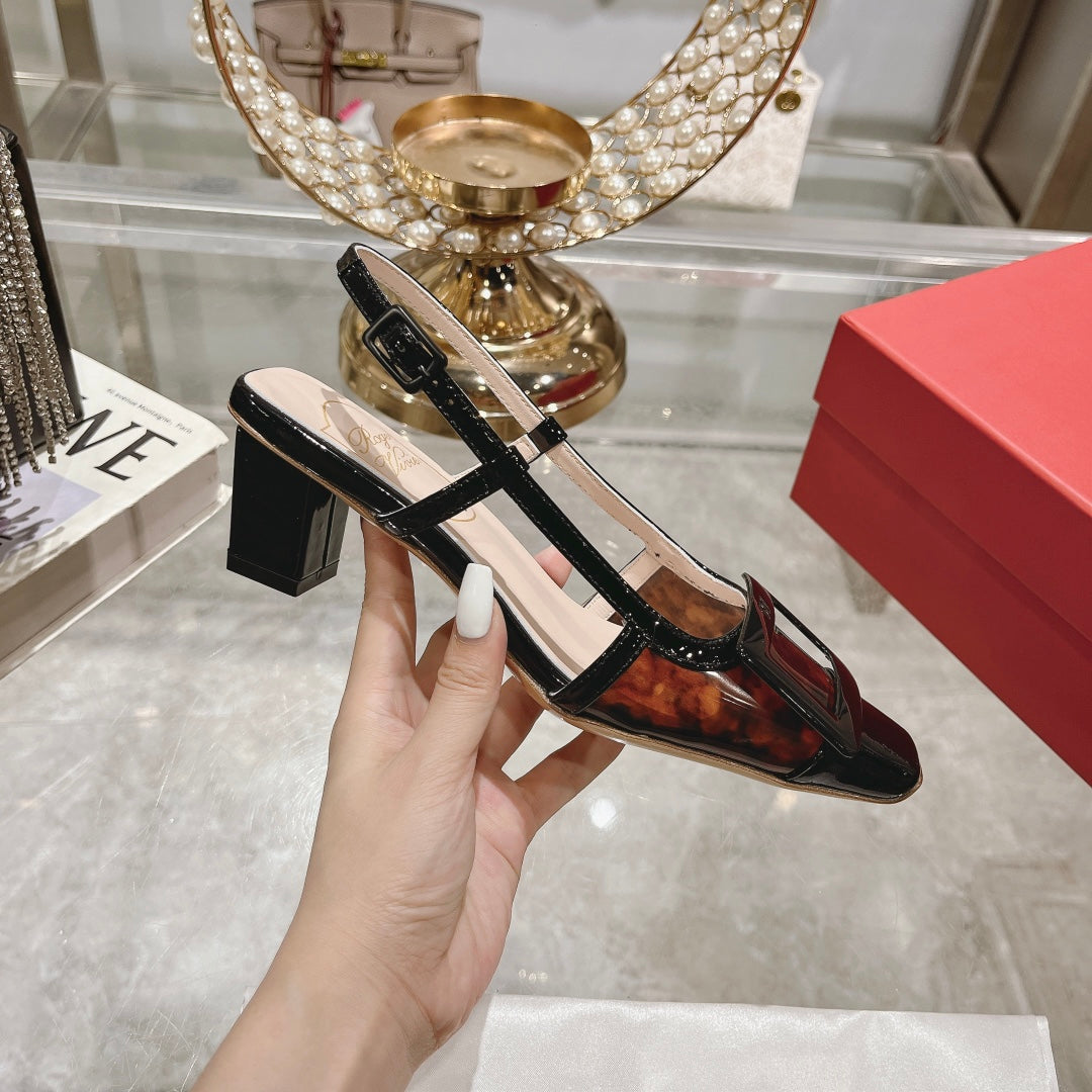 Belle Viv Metal Buckle Slingback Pumps 45 Black Patent Leather