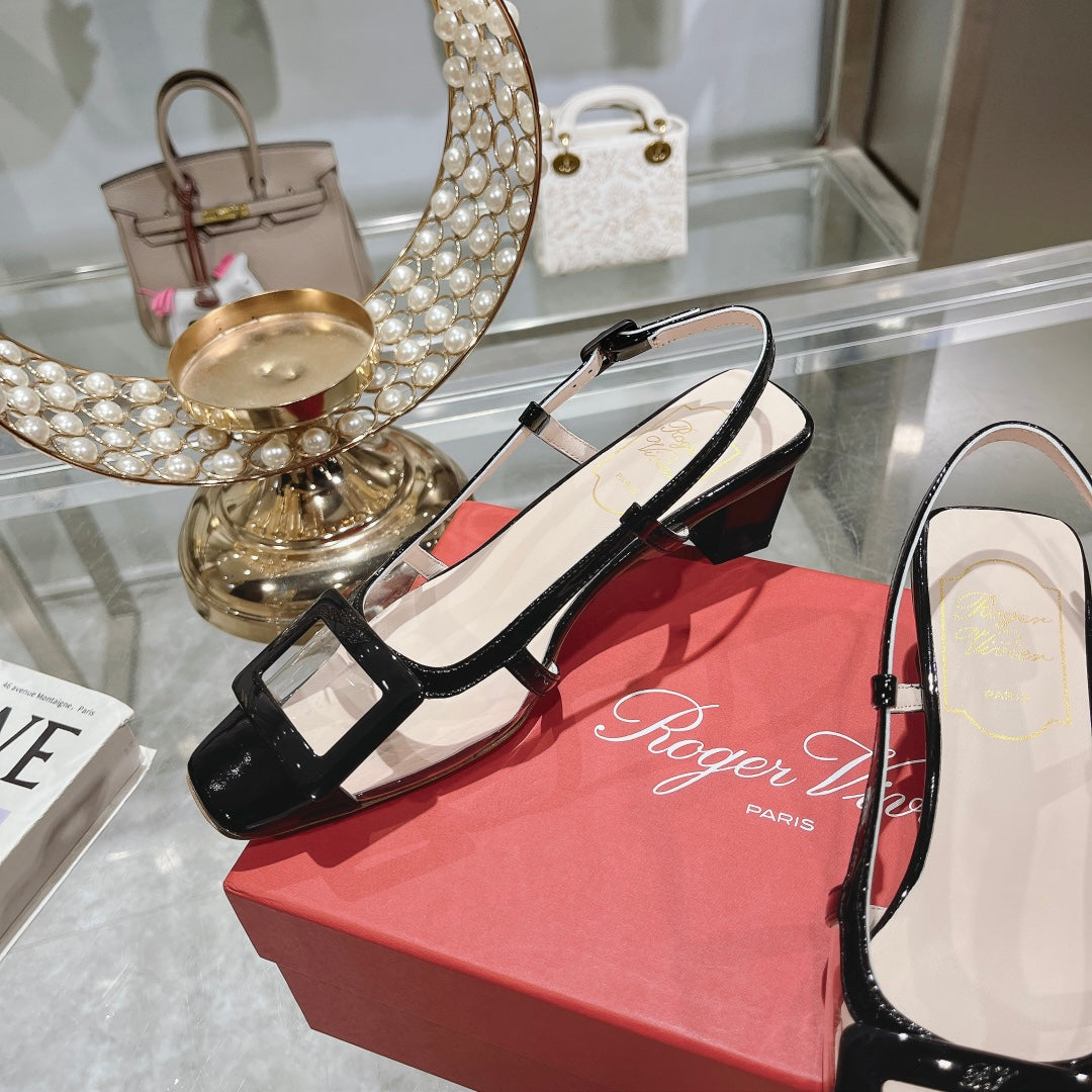 Belle Viv Metal Buckle Slingback Pumps 45 Transparent Black Patent Leather