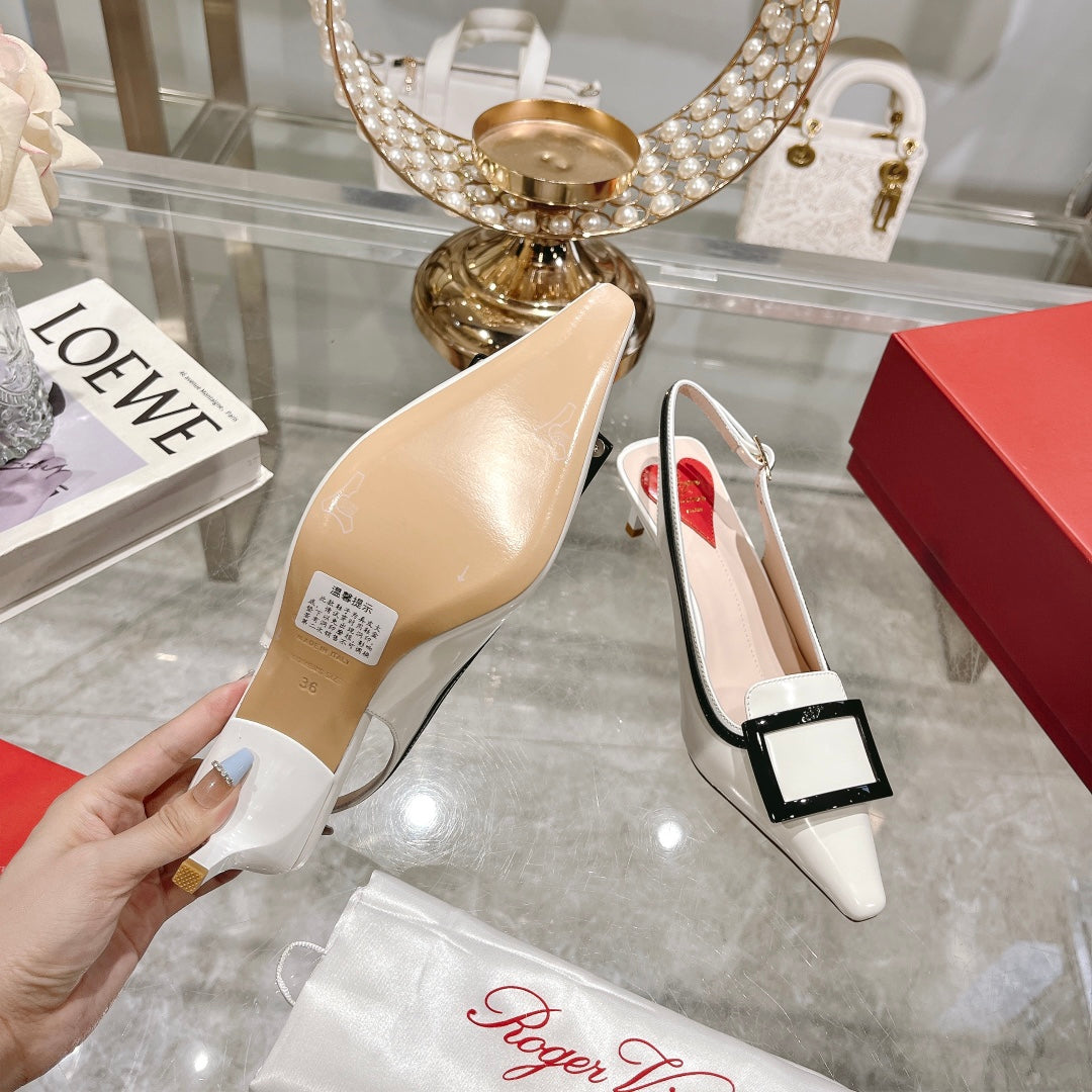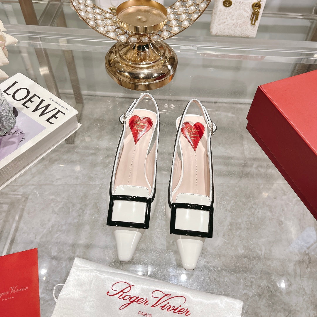 Belle Viv Metal Buckle Slingback Pumps 65 White Black Patent Leather