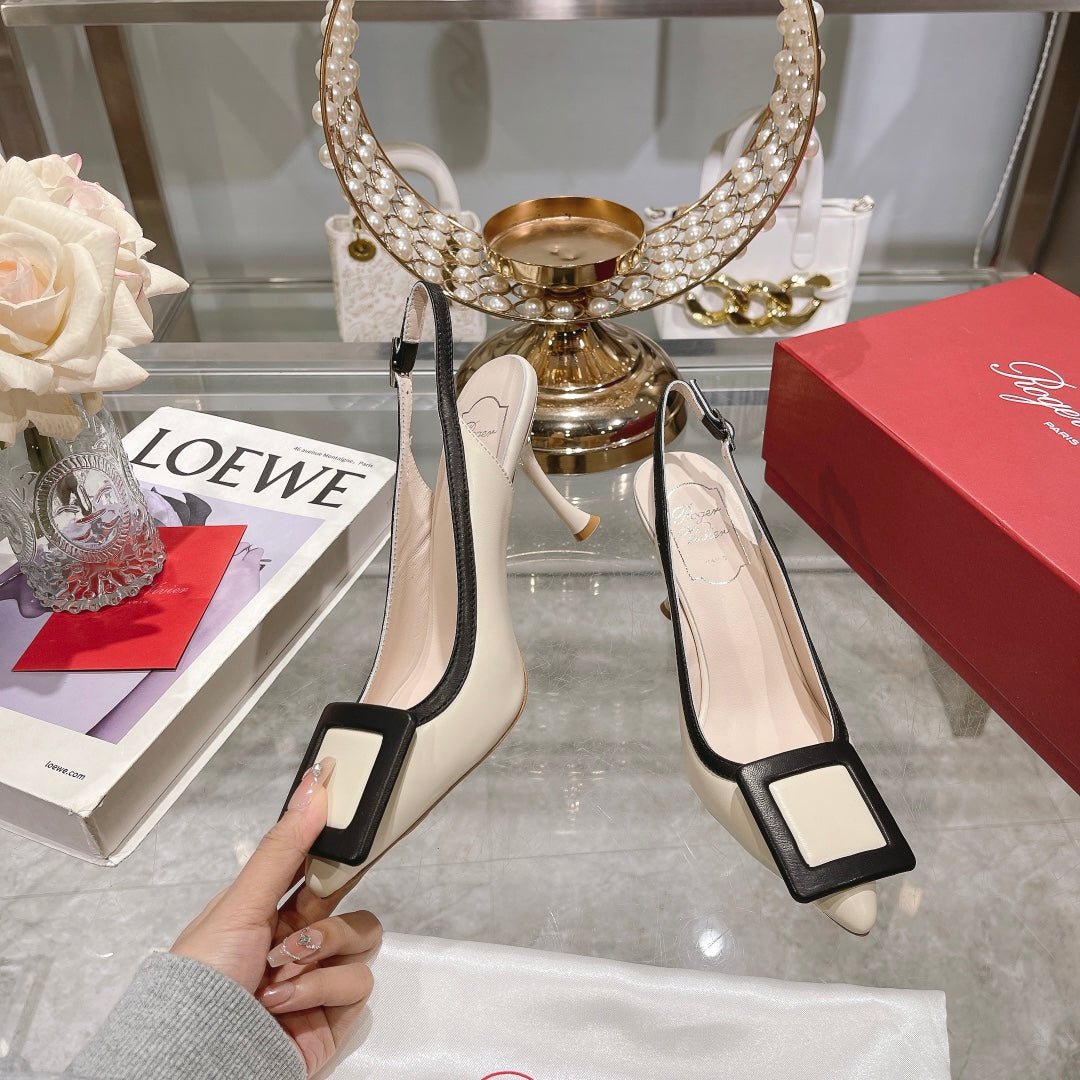 Belle Viv Metal Buckle Slingback Pumps 85 White Black Patent Leather