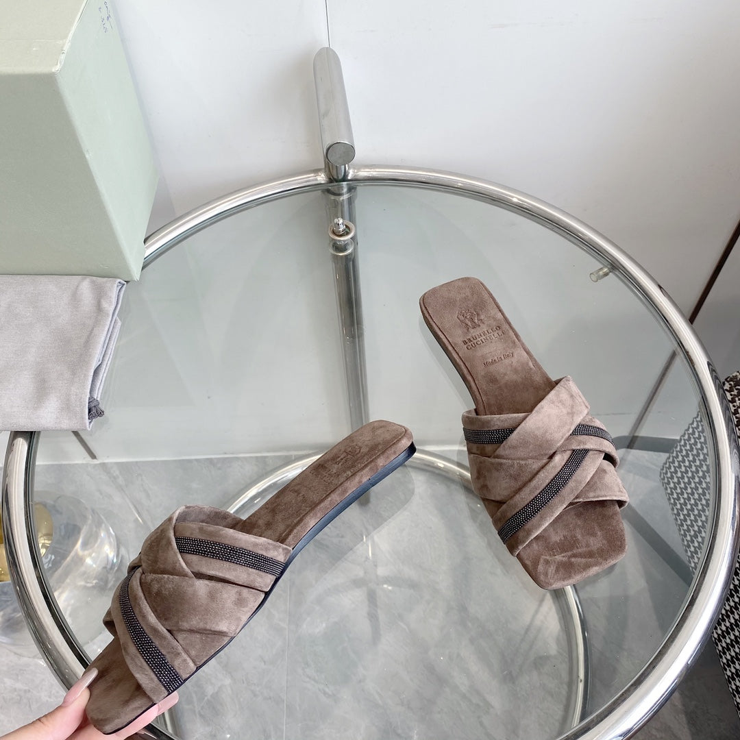 brunello dark brown suede cross sandal