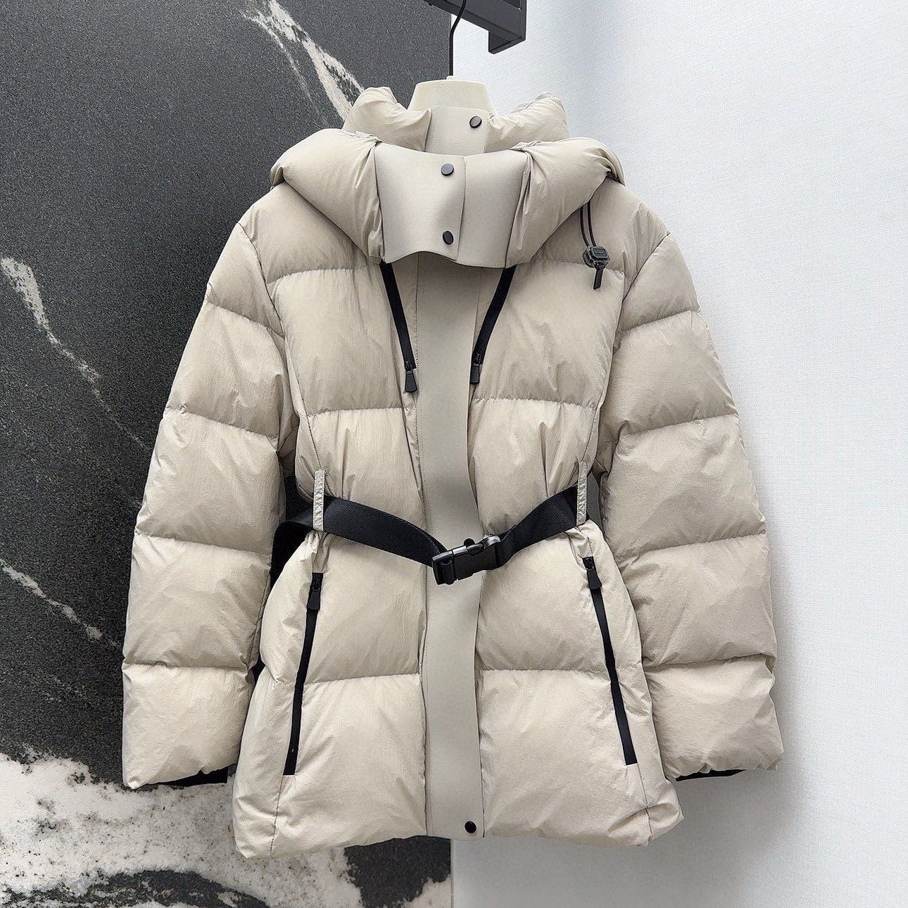 Burberry 25 Stand Collar Hooded Down Jacket White Polyester