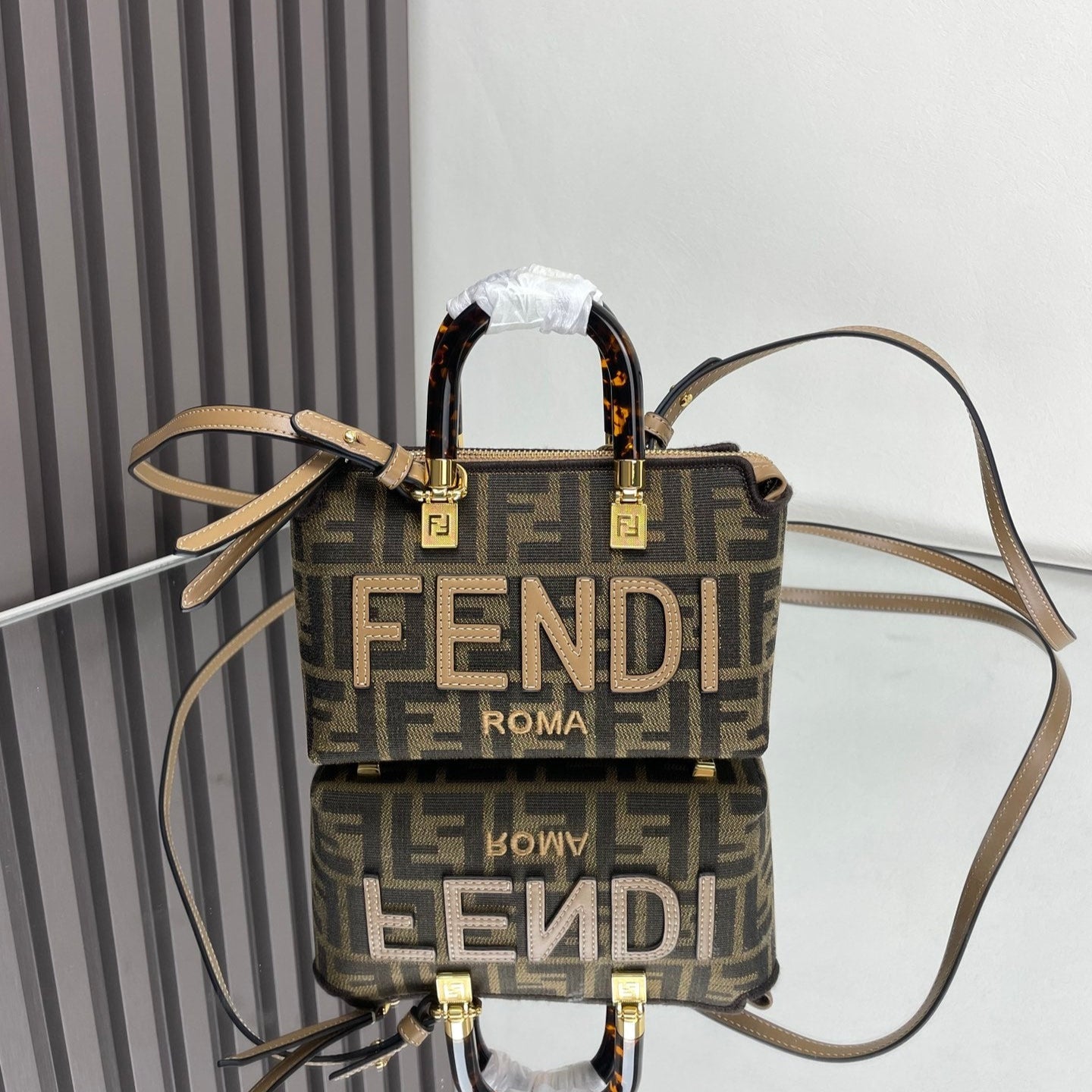BY THE WAY MINI 18 IN SOYA BEAN JACQUARD FABRIC AND BROWN CALFSKIN TRIM