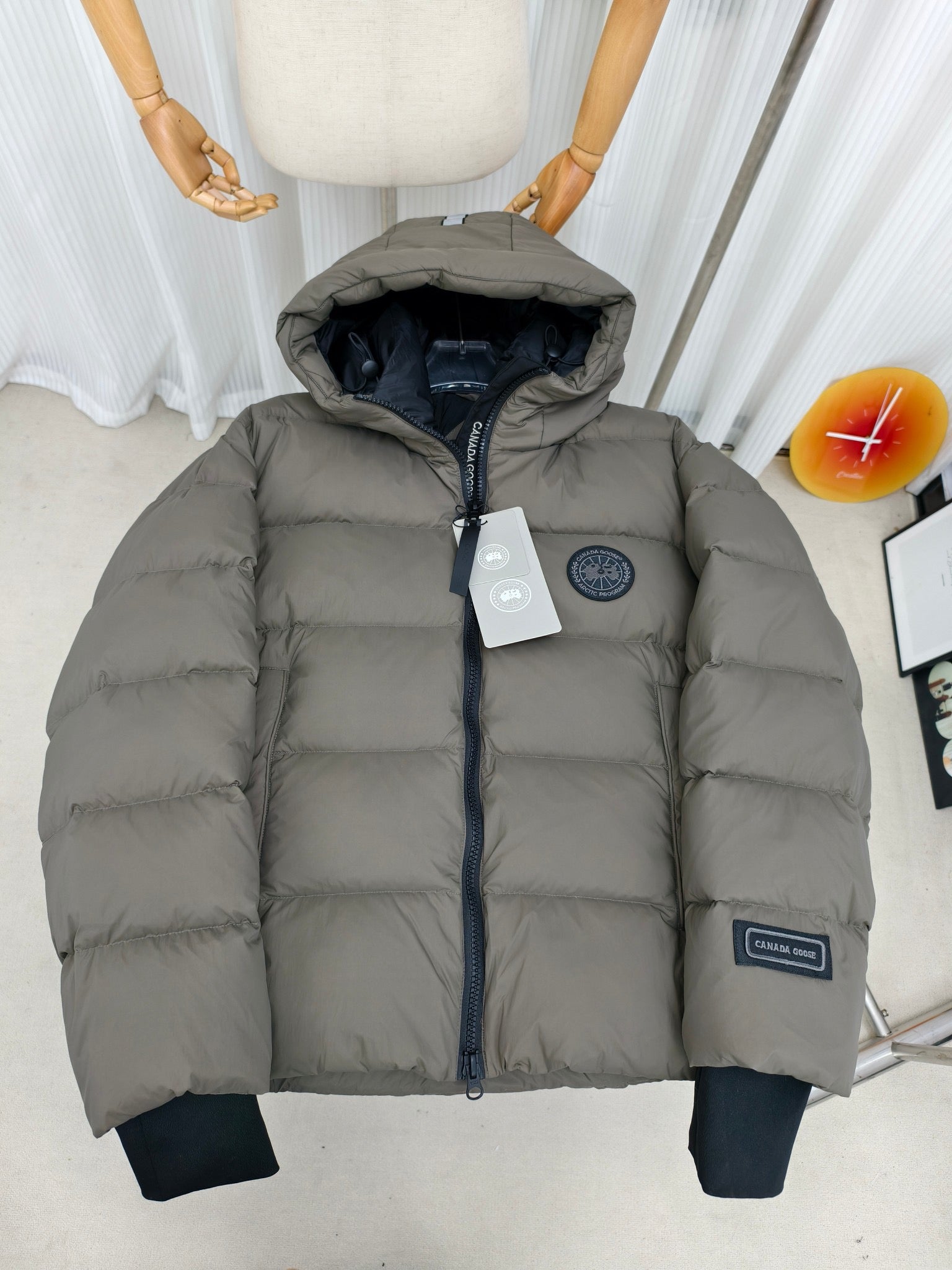 C. Goose Down Jacket Olive Grey Polyester 0014