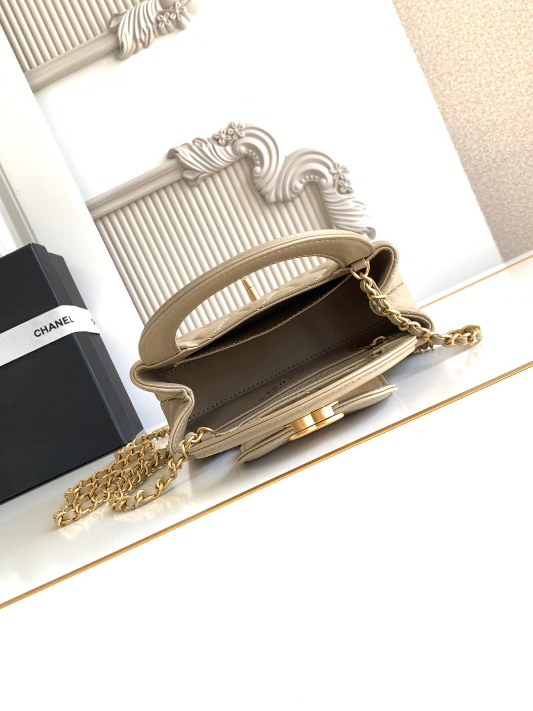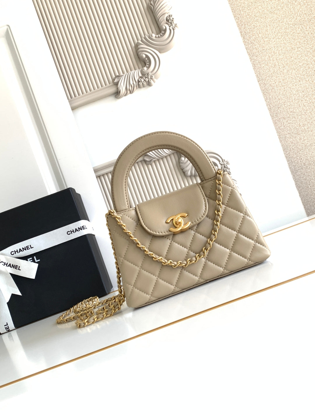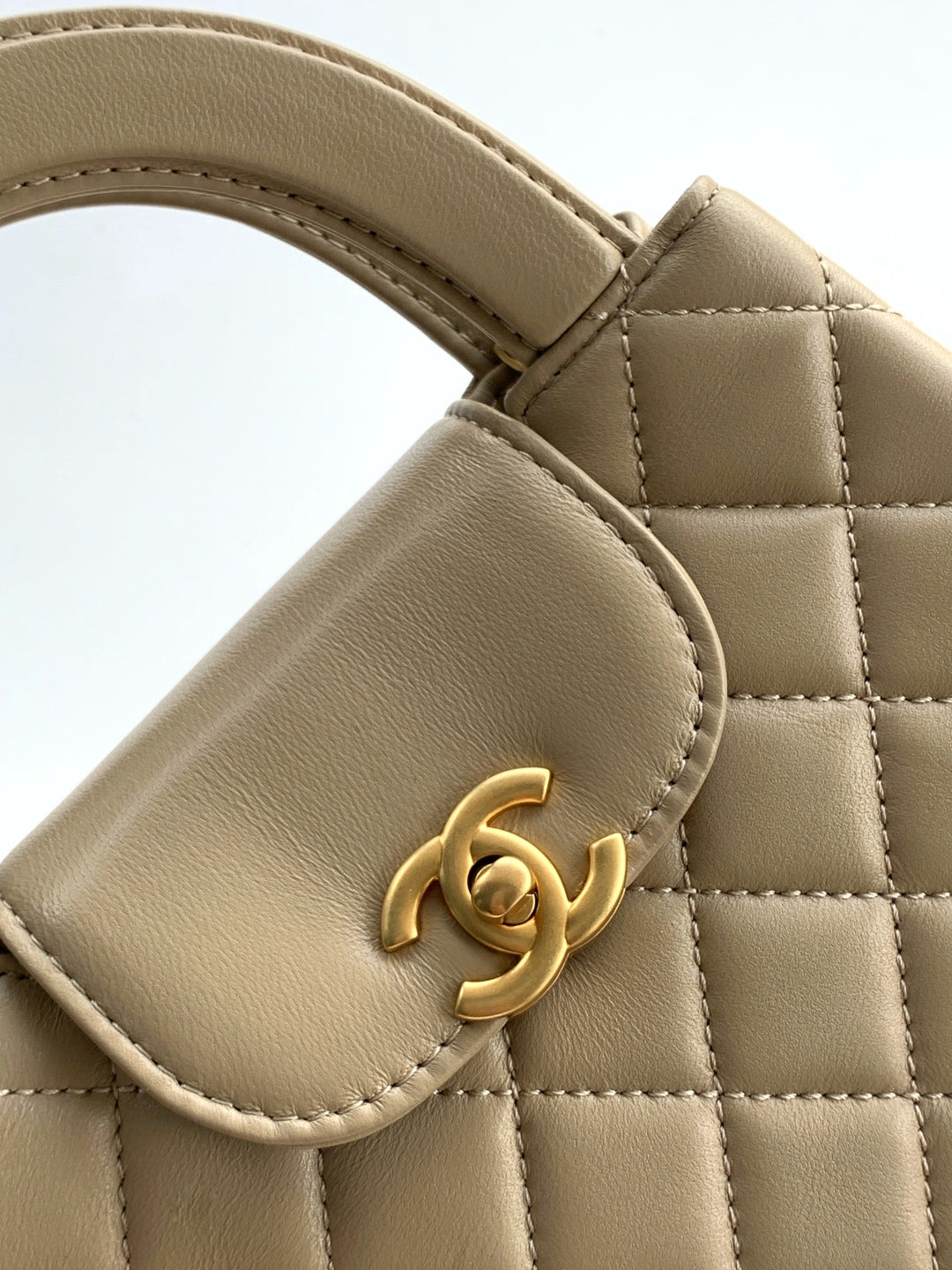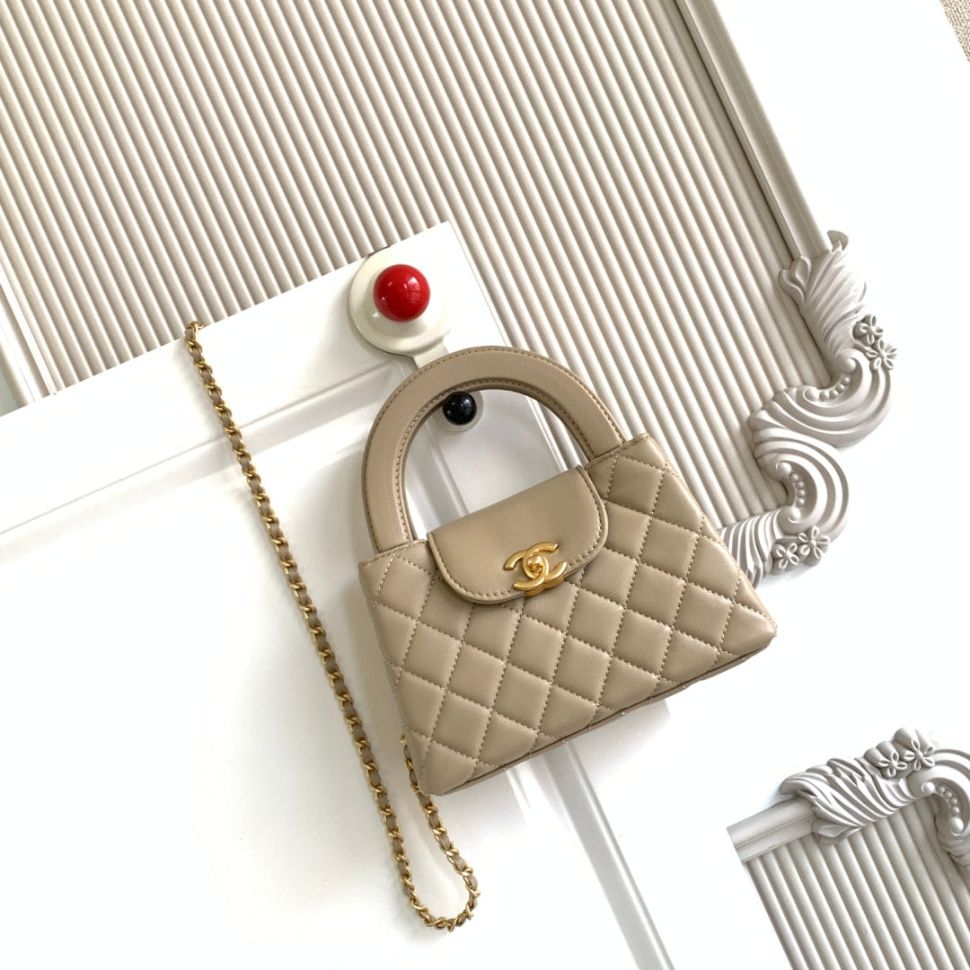 cc 24a nano 19cm kelly shopper bag light beige lambskin
