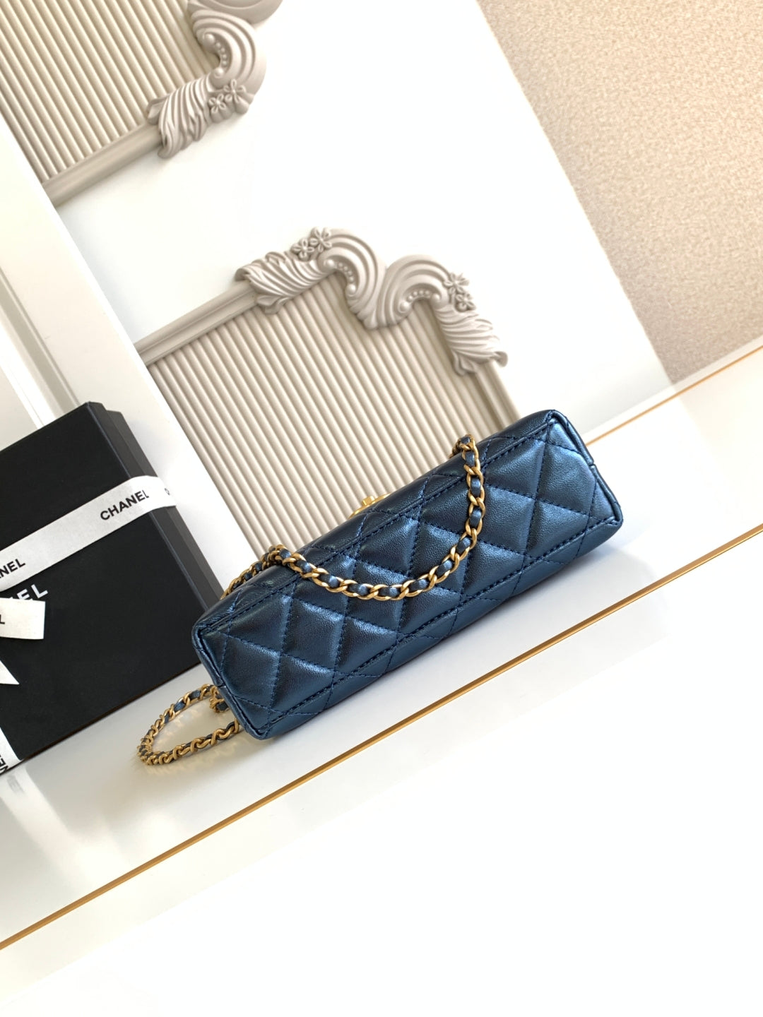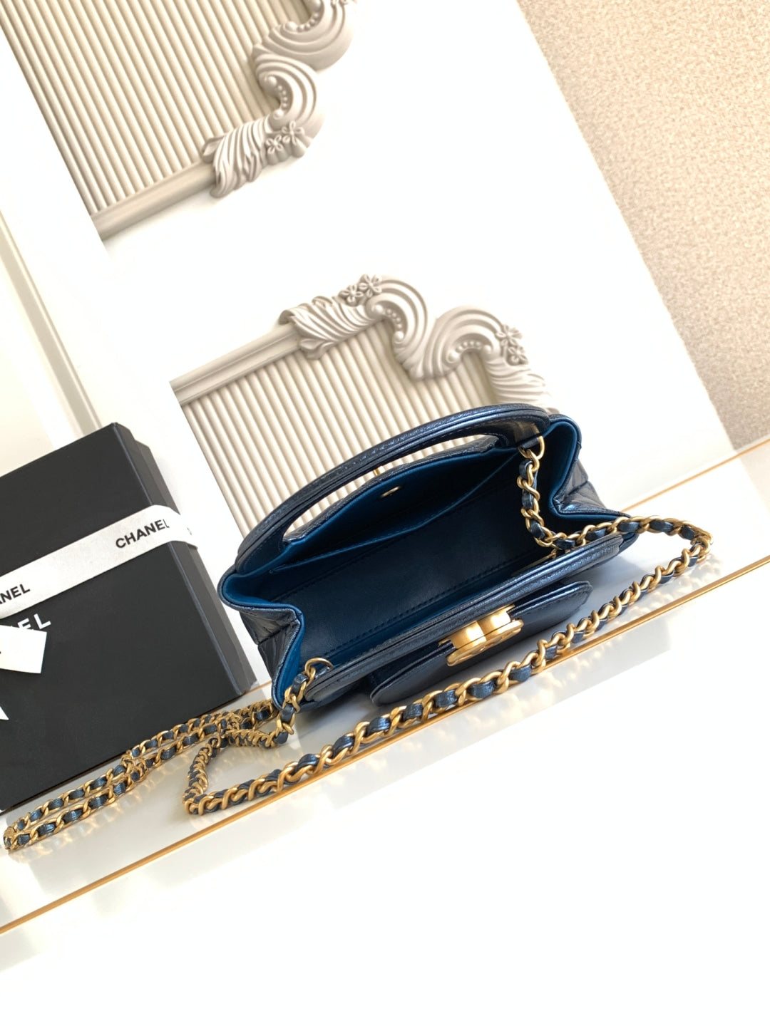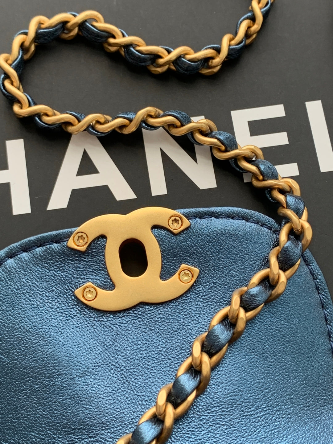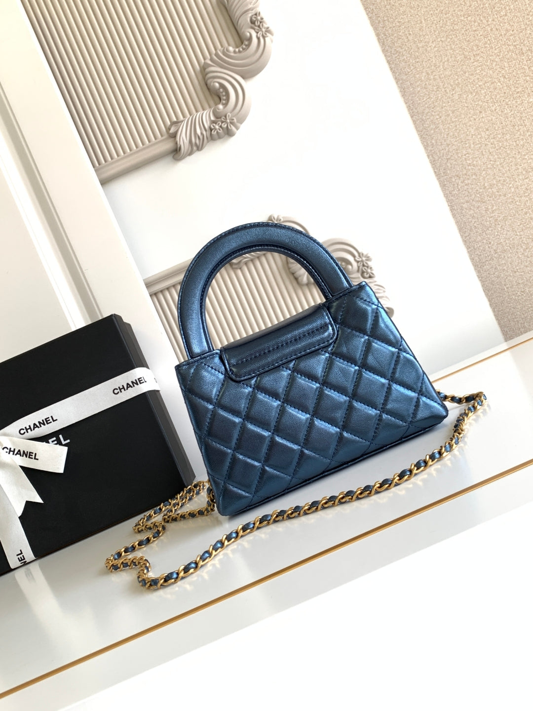 cc 24a nano 19cm kelly shopper bag metallic blue lambskin