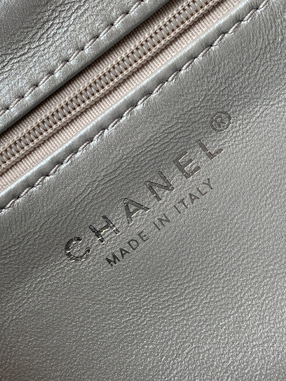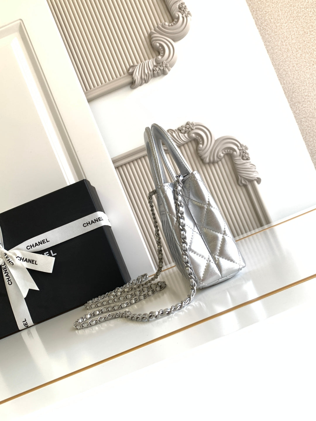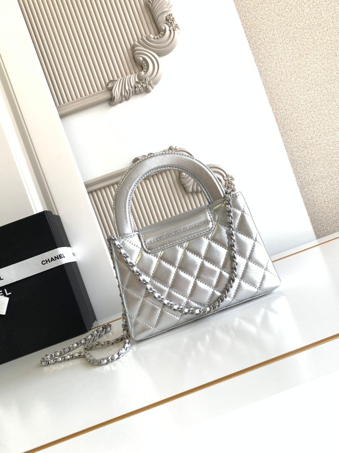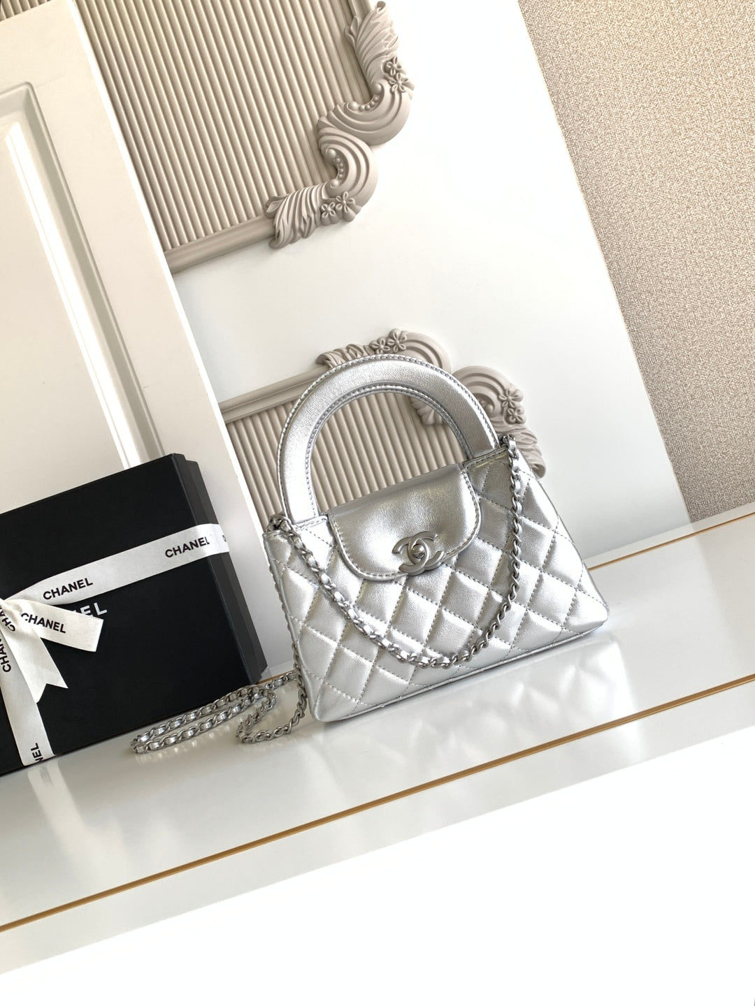 cc 24a nano 19cm kelly shopper bag sliver metallic lambskin