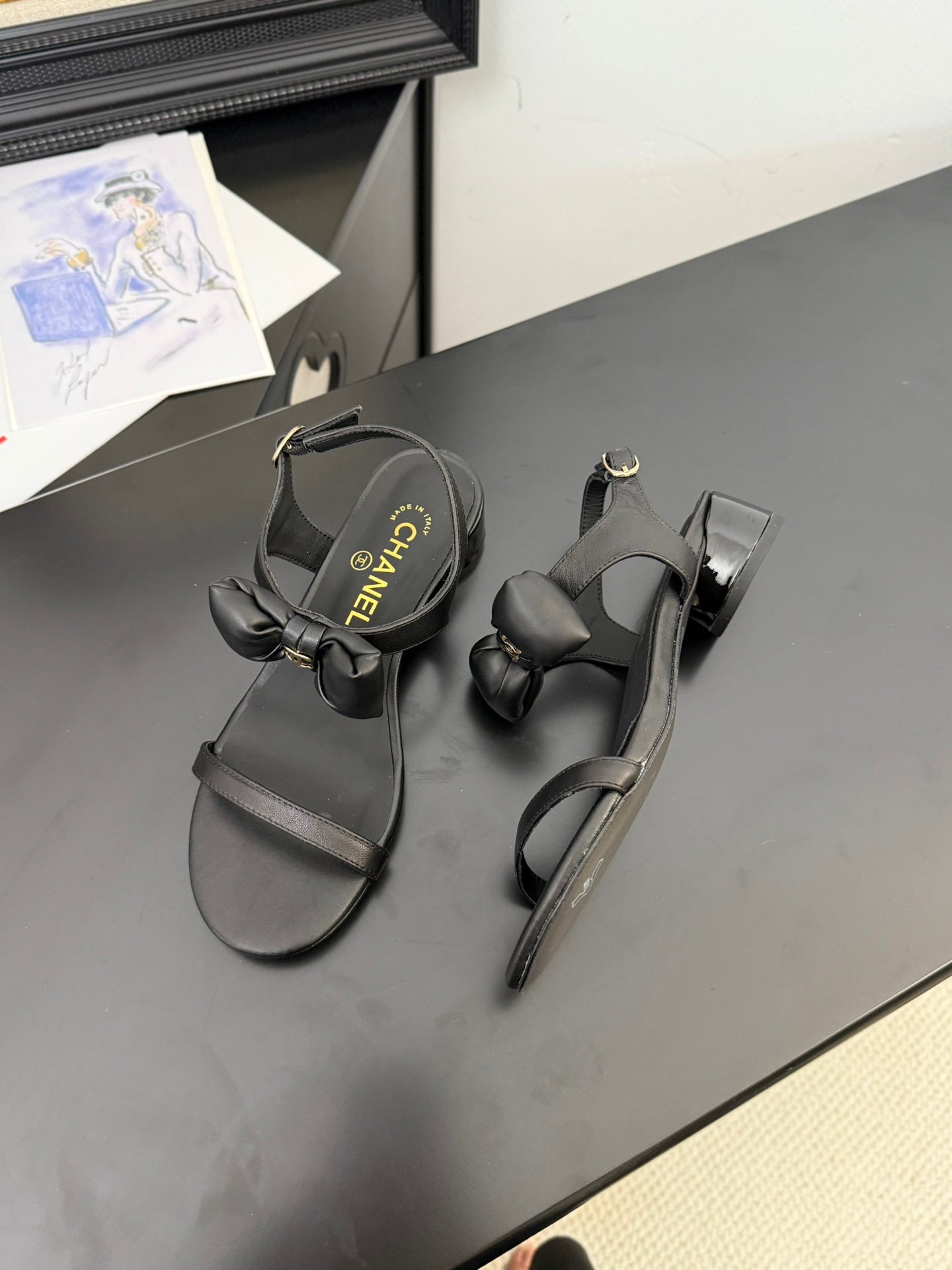 CC 25 Bow Attached Sandals Black Sheepskin 233421