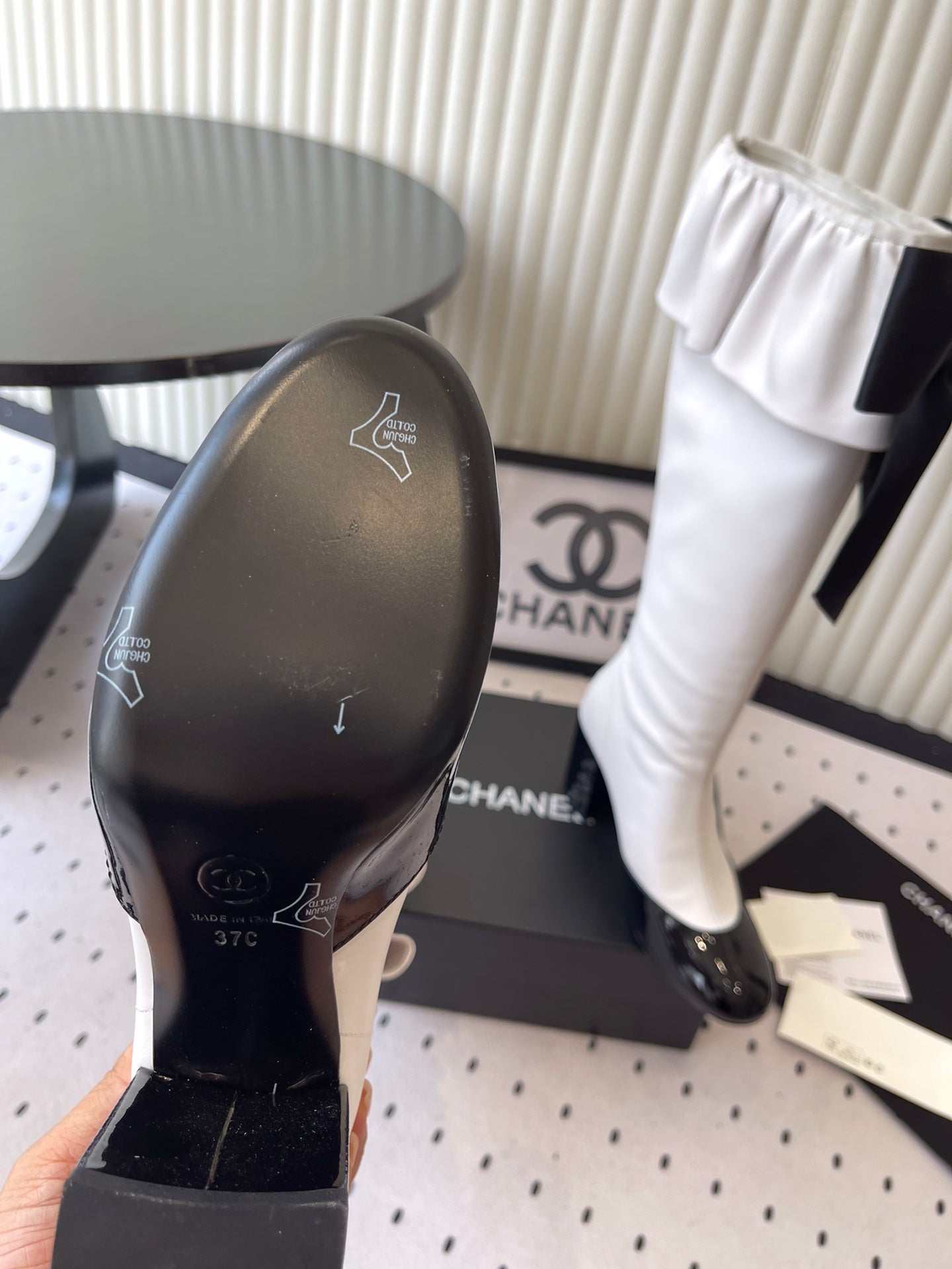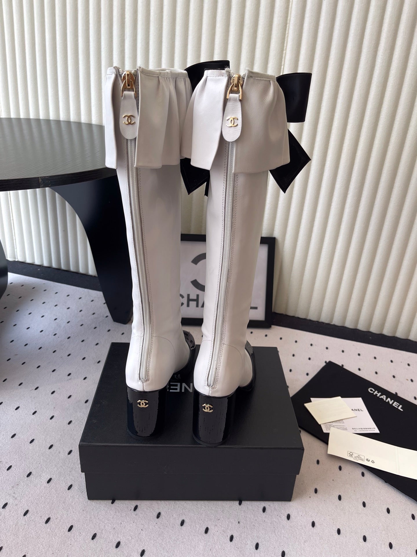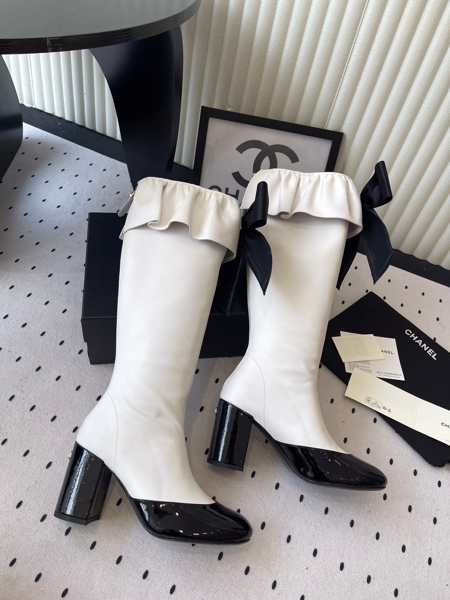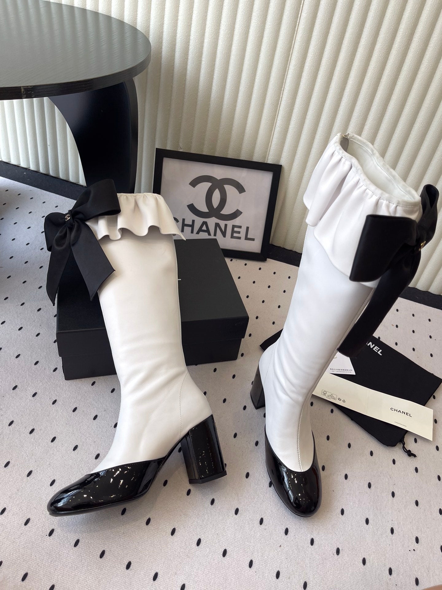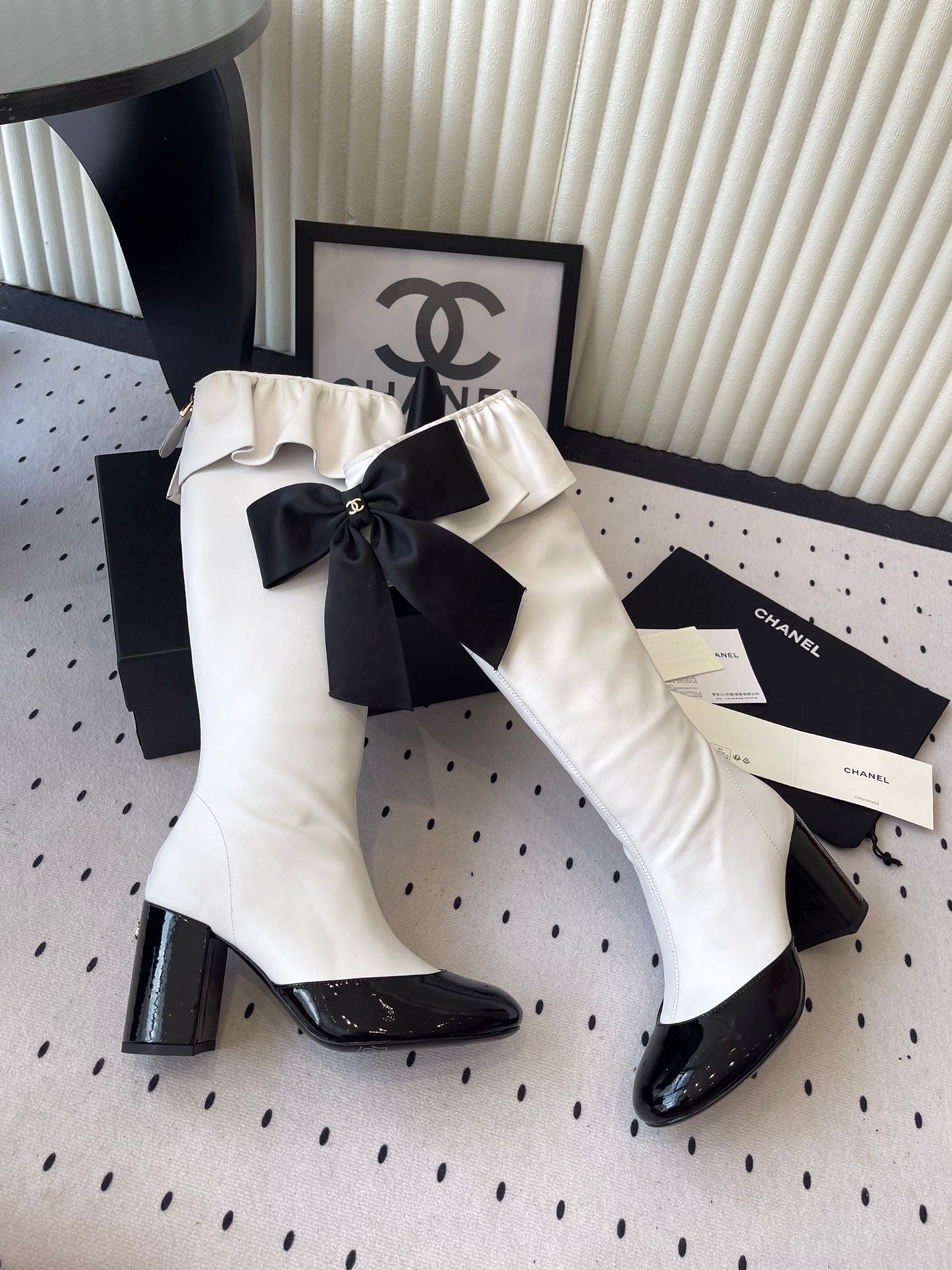 CC 25 Bow Elastic Boot White Black Lambskin 514028