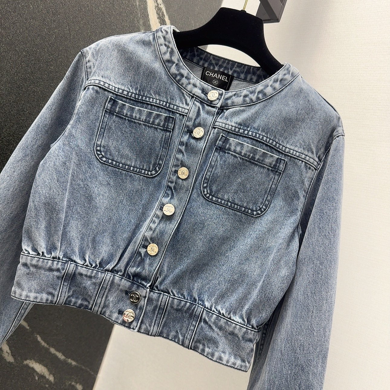 CC 25 Distressed Denim Jacket Blue Cotton