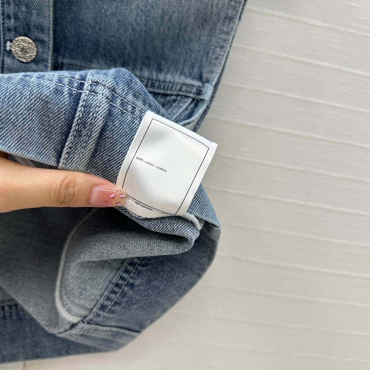 CC 25 Embroidered Vest Jacket Blue Denim Cotton