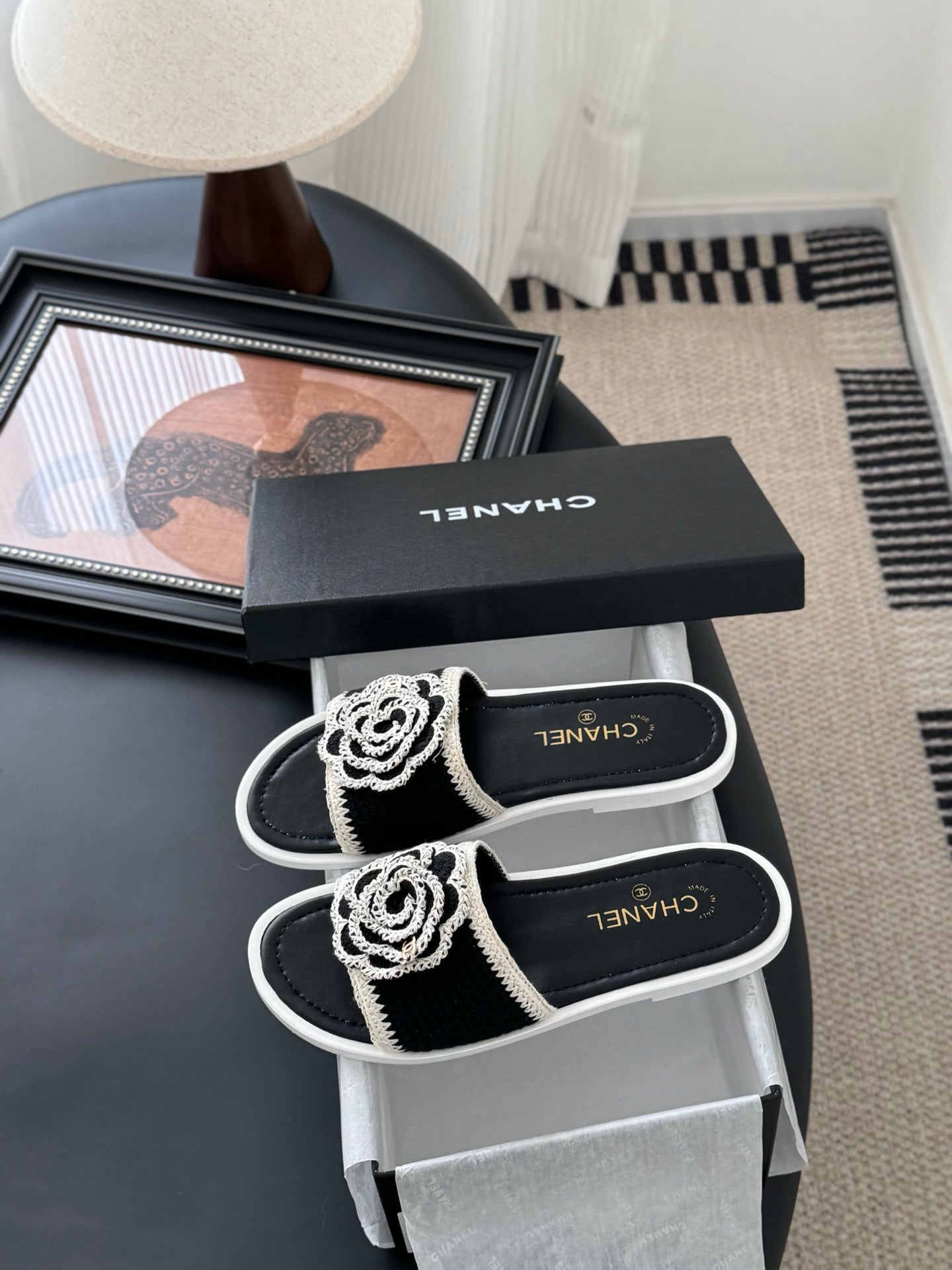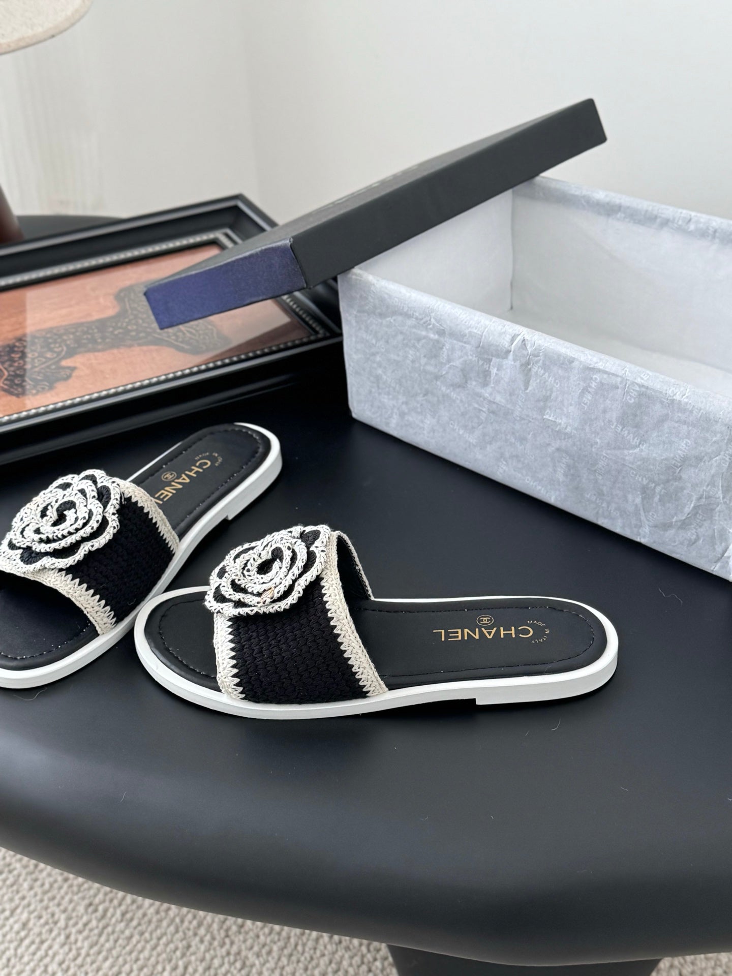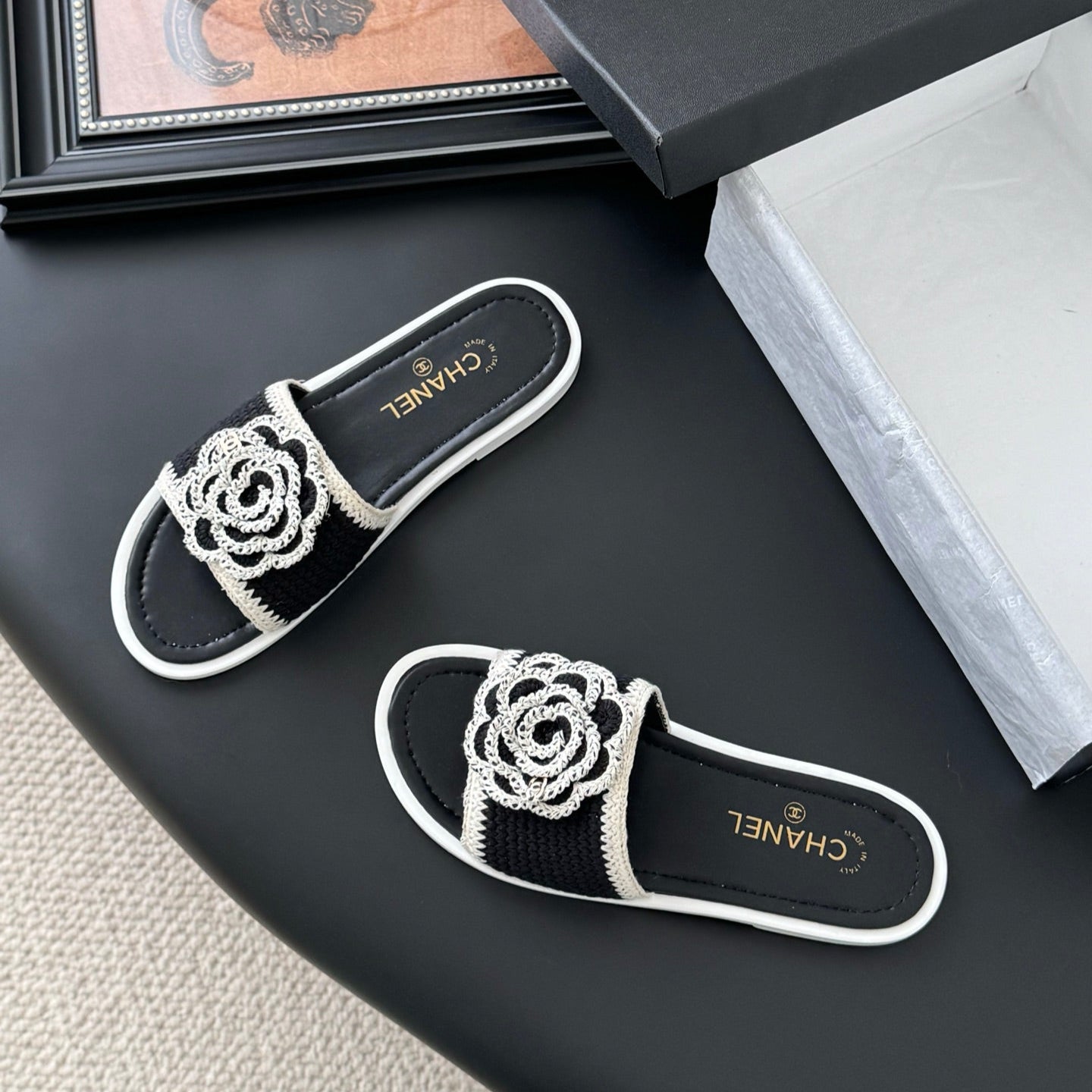 CC 25 Flower Slippers Black Knitted 305305