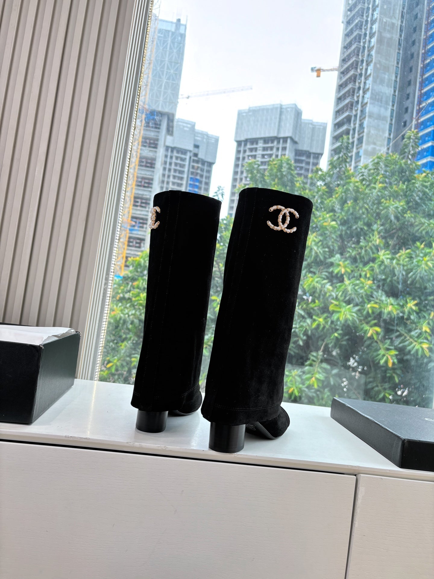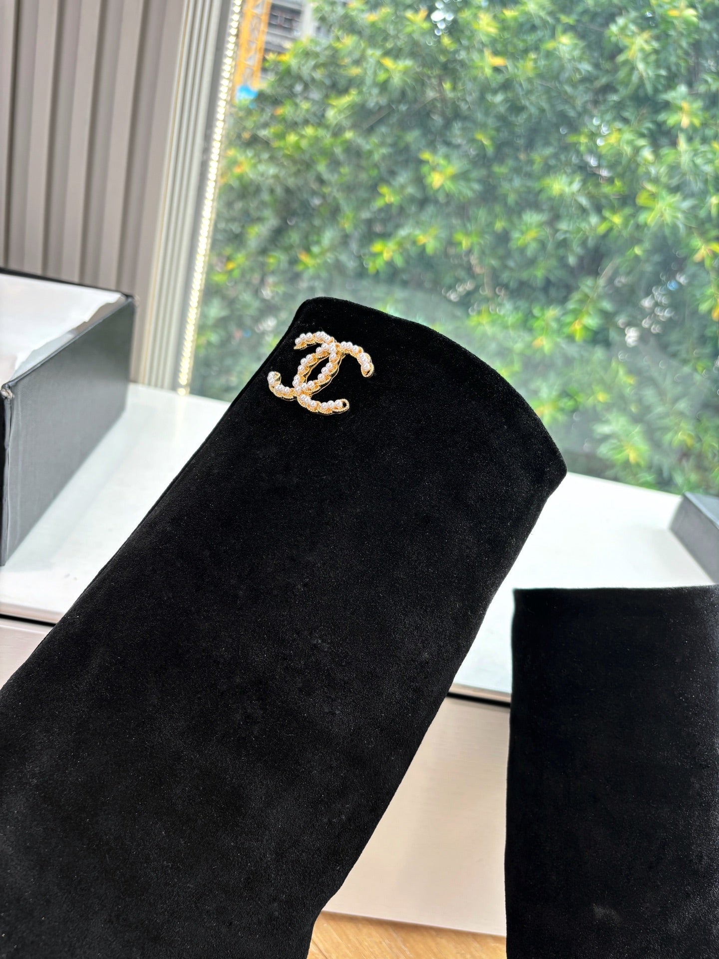 CC 25 High Boot Black Suede Grosgrain 430341
