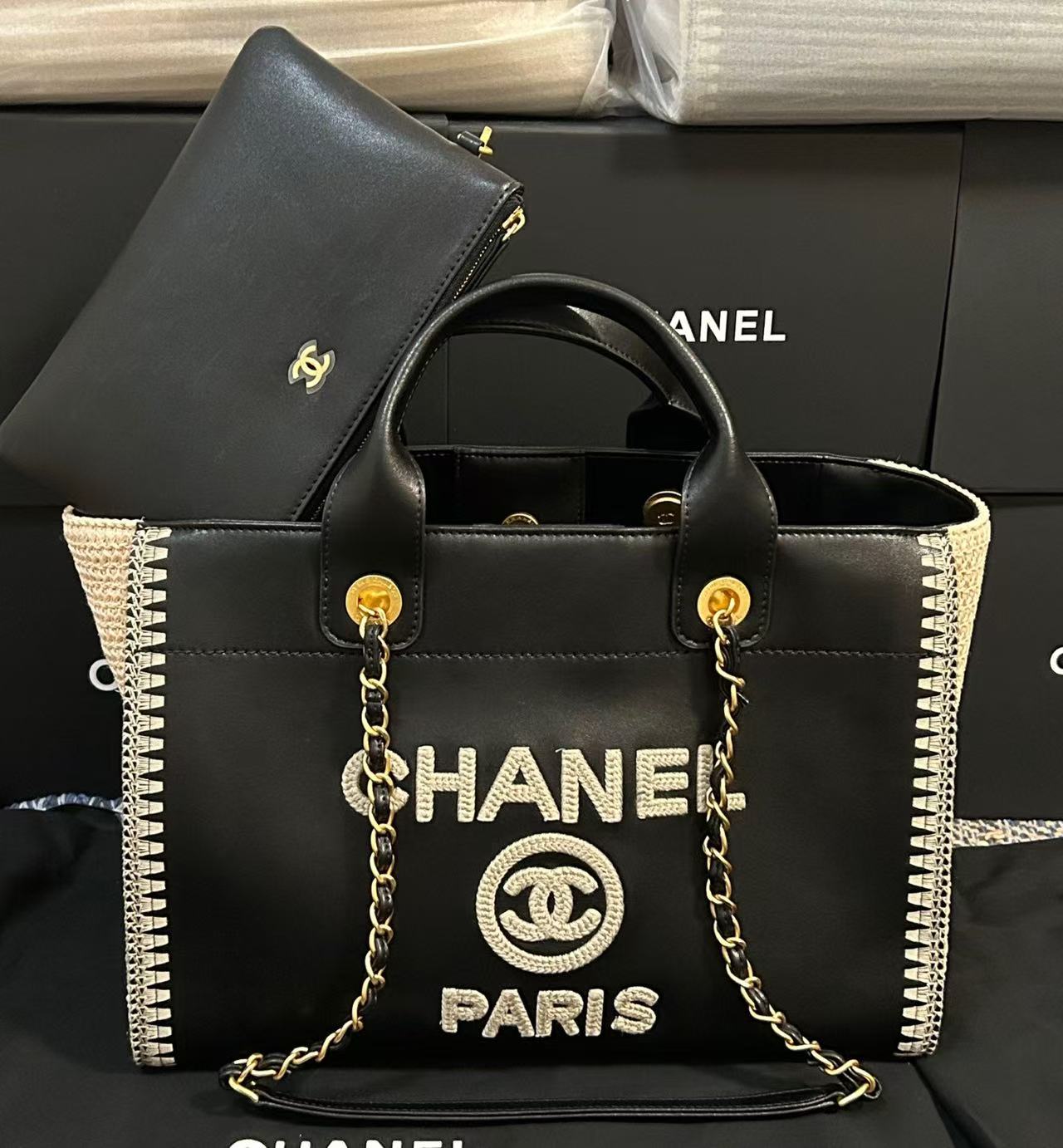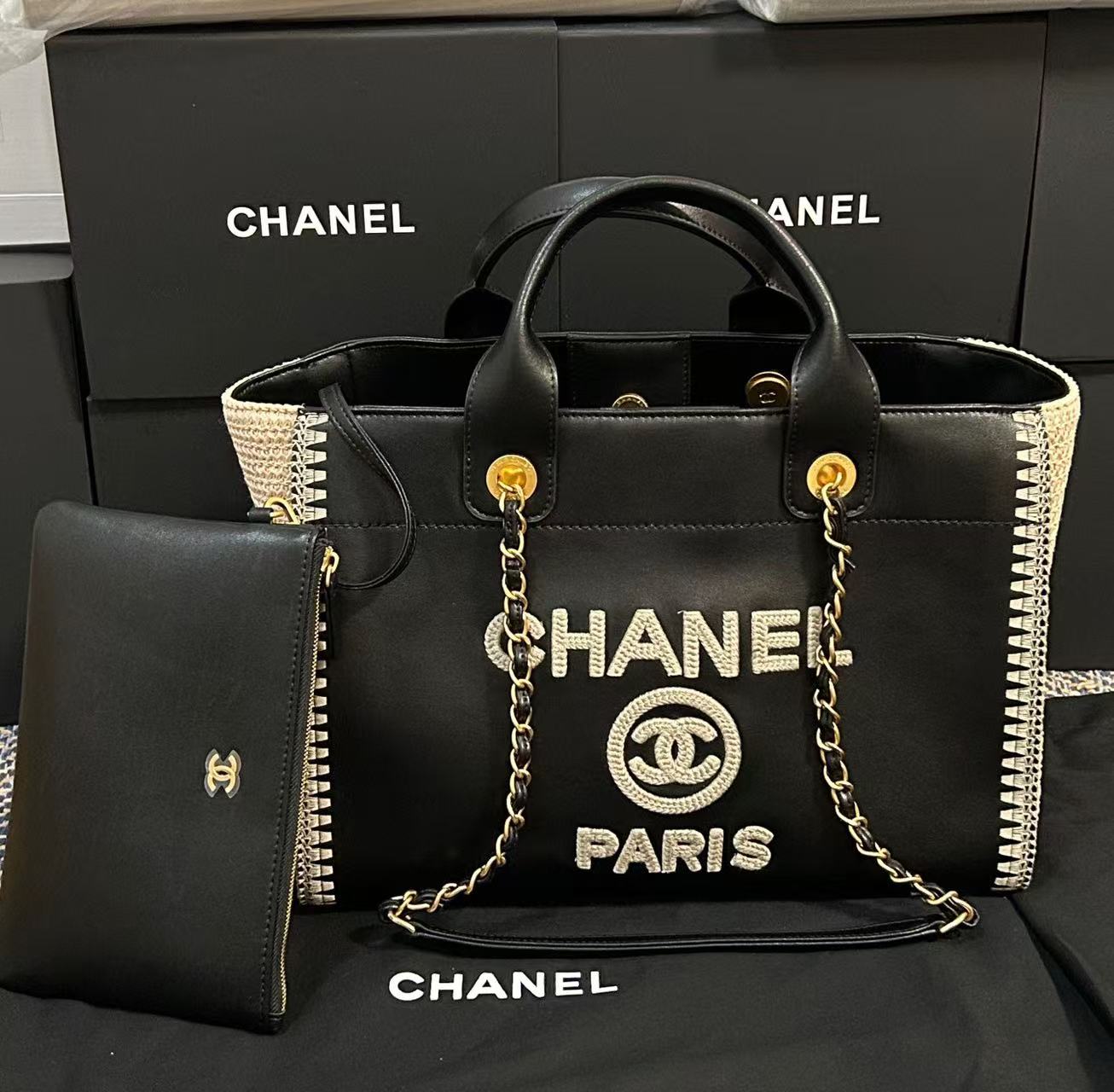 CC 25 Large Crochet Deauville Shopping Bag 34cm Black