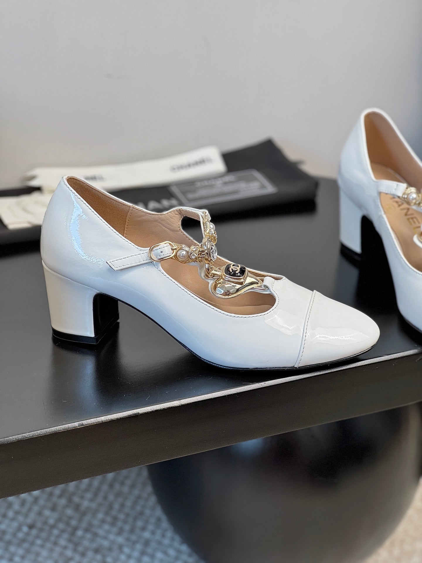 CC 25 Marry Jane White Glossy Lambskin 329764